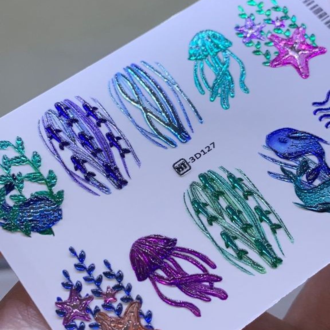 ANNA TKACHEVA Water decal 3D Crystal HT3D127, 1 pz. Istruzioni per l'uso: 1. Effettuare una preparazione standard della lamina ungueale.2. Selezionare il modello appropriato, tagliare l'immagine alla dimensione dell'unghia. 3. Applicare la base,polimerizzare. Applicare uno strato sottile del semipermanente bianco, se richiesto dal design del water decal. Polimerizzare. 4. Applicare uno strato sottile della base. Non polimerizzare. 5. Mettere il water decal su un disco di cotone inumidito con acqua calda (non fredda!) Per circa 10-15 secondi. Spostarlo trasferendo la pellicola sull'unghia. Raddrizzare la pellicola, tirando leggermente verso l'alto il bordo libero. Distendere con cura le pieghe, estraendo i resti di aria e acqua con un panno morbido, un pennello piatto o con le dita. Polimerizzare a tempo pieno. (UV - 2 min, led -30-60 sec). 6. Utilizzando la lima fine, dall'alto verso il basso, rimuovere delicatamente la pellicola in eccesso dal bordo libero dell'unghia. 7. Coprire 2 volte con il top coat, ben sigillando il bordo libero.