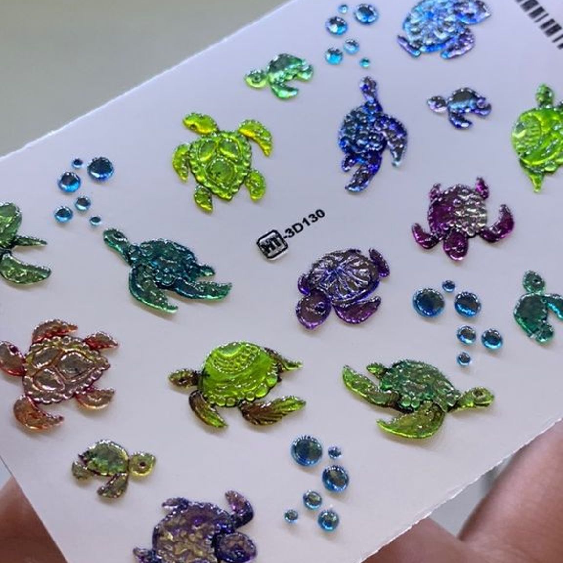 ANNA TKACHEVA Water decal 3D Crystal HT3D130, 1 pz. Istruzioni per l'uso: 1. Effettuare una preparazione standard della lamina ungueale.2. Selezionare il modello appropriato, tagliare l'immagine alla dimensione dell'unghia. 3. Applicare la base,polimerizzare. Applicare uno strato sottile del semipermanente bianco, se richiesto dal design del water decal. Polimerizzare. 4. Applicare uno strato sottile della base. Non polimerizzare. 5. Mettere il water decal su un disco di cotone inumidito con acqua calda (non fredda!) Per circa 10-15 secondi. Spostarlo trasferendo la pellicola sull'unghia. Raddrizzare la pellicola, tirando leggermente verso l'alto il bordo libero. Distendere con cura le pieghe, estraendo i resti di aria e acqua con un panno morbido, un pennello piatto o con le dita. Polimerizzare a tempo pieno. (UV - 2 min, led -30-60 sec). 6. Utilizzando la lima fine, dall'alto verso il basso, rimuovere delicatamente la pellicola in eccesso dal bordo libero dell'unghia. 7. Coprire 2 volte con il top coat, ben sigillando il bordo libero.