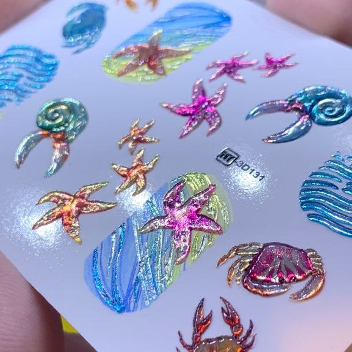 ANNA TKACHEVA Water decal 3D Crystal HT3D131, 1 pz. Istruzioni per l'uso: 1. Effettuare una preparazione standard della lamina ungueale.2. Selezionare il modello appropriato, tagliare l'immagine alla dimensione dell'unghia. 3. Applicare la base,polimerizzare. Applicare uno strato sottile del semipermanente bianco, se richiesto dal design del water decal. Polimerizzare. 4. Applicare uno strato sottile della base. Non polimerizzare. 5. Mettere il water decal su un disco di cotone inumidito con acqua calda (non fredda!) Per circa 10-15 secondi. Spostarlo trasferendo la pellicola sull'unghia. Raddrizzare la pellicola, tirando leggermente verso l'alto il bordo libero. Distendere con cura le pieghe, estraendo i resti di aria e acqua con un panno morbido, un pennello piatto o con le dita. Polimerizzare a tempo pieno. (UV - 2 min, led -30-60 sec). 6. Utilizzando la lima fine, dall'alto verso il basso, rimuovere delicatamente la pellicola in eccesso dal bordo libero dell'unghia. 7. Coprire 2 volte con il top coat, ben sigillando il bordo libero.