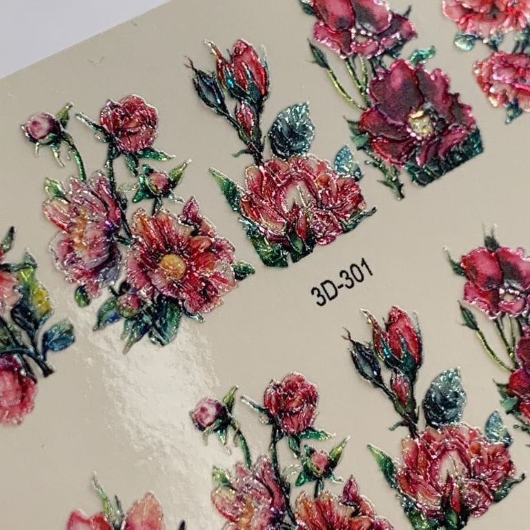ANNA TKACHEVA Water decal 3D Crystal HT3D301, 1 pz. Istruzioni per l'uso: 1. Effettuare una preparazione standard della lamina ungueale.2. Selezionare il modello appropriato, tagliare l'immagine alla dimensione dell'unghia. 3. Applicare la base,polimerizzare. Applicare uno strato sottile del semipermanente bianco, se richiesto dal design del water decal. Polimerizzare. 4. Applicare uno strato sottile della base. Non polimerizzare. 5. Mettere il water decal su un disco di cotone inumidito con acqua calda (non fredda!) Per circa 10-15 secondi. Spostarlo trasferendo la pellicola sull'unghia. Raddrizzare la pellicola, tirando leggermente verso l'alto il bordo libero. Distendere con cura le pieghe, estraendo i resti di aria e acqua con un panno morbido, un pennello piatto o con le dita. Polimerizzare a tempo pieno. (UV - 2 min, led -30-60 sec). 6. Utilizzando la lima fine, dall'alto verso il basso, rimuovere delicatamente la pellicola in eccesso dal bordo libero dell'unghia. 7. Coprire 2 volte con il top coat, ben sigillando il bordo libero.
