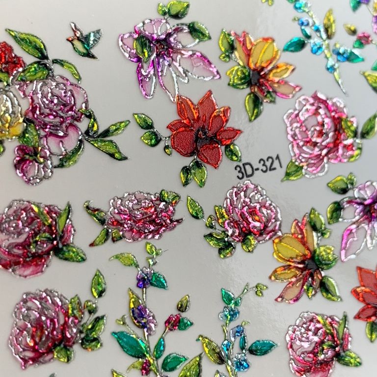 ANNA TKACHEVA Water decal 3D Crystal HT3D321, 1 pz. Istruzioni per l'uso: 1. Effettuare una preparazione standard della lamina ungueale.2. Selezionare il modello appropriato, tagliare l'immagine alla dimensione dell'unghia. 3. Applicare la base,polimerizzare. Applicare uno strato sottile del semipermanente bianco, se richiesto dal design del water decal. Polimerizzare. 4. Applicare uno strato sottile della base. Non polimerizzare. 5. Mettere il water decal su un disco di cotone inumidito con acqua calda (non fredda!) Per circa 10-15 secondi. Spostarlo trasferendo la pellicola sull'unghia. Raddrizzare la pellicola, tirando leggermente verso l'alto il bordo libero. Distendere con cura le pieghe, estraendo i resti di aria e acqua con un panno morbido, un pennello piatto o con le dita. Polimerizzare a tempo pieno. (UV - 2 min, led -30-60 sec). 6. Utilizzando la lima fine, dall'alto verso il basso, rimuovere delicatamente la pellicola in eccesso dal bordo libero dell'unghia. 7. Coprire 2 volte con il top coat, ben sigillando il bordo libero.