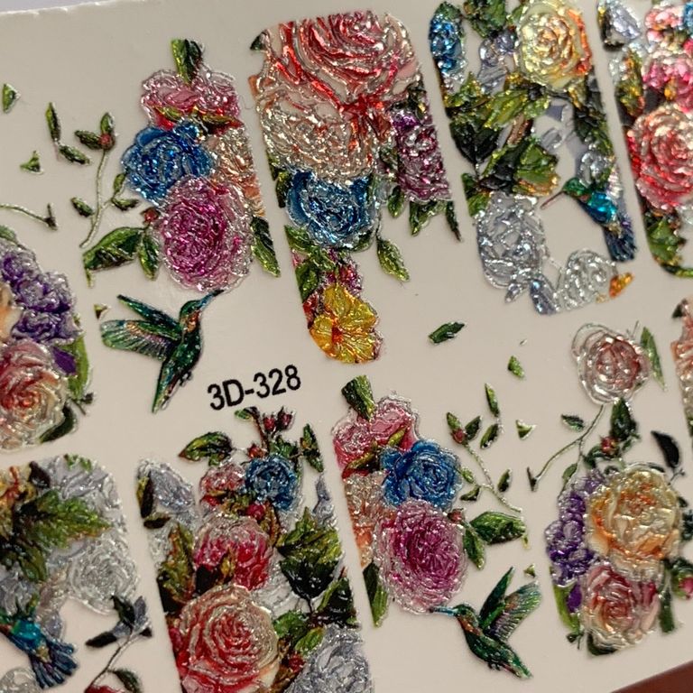 ANNA TKACHEVA Water decal 3D Crystal HT3D328, 1 pz. Istruzioni per l'uso: 1. Effettuare una preparazione standard della lamina ungueale.2. Selezionare il modello appropriato, tagliare l'immagine alla dimensione dell'unghia. 3. Applicare la base,polimerizzare. Applicare uno strato sottile del semipermanente bianco, se richiesto dal design del water decal. Polimerizzare. 4. Applicare uno strato sottile della base. Non polimerizzare. 5. Mettere il water decal su un disco di cotone inumidito con acqua calda (non fredda!) Per circa 10-15 secondi. Spostarlo trasferendo la pellicola sull'unghia. Raddrizzare la pellicola, tirando leggermente verso l'alto il bordo libero. Distendere con cura le pieghe, estraendo i resti di aria e acqua con un panno morbido, un pennello piatto o con le dita. Polimerizzare a tempo pieno. (UV - 2 min, led -30-60 sec). 6. Utilizzando la lima fine, dall'alto verso il basso, rimuovere delicatamente la pellicola in eccesso dal bordo libero dell'unghia. 7. Coprire 2 volte con il top coat, ben sigillando il bordo libero.