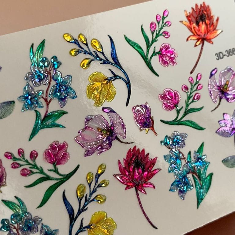 ANNA TKACHEVA Water decal 3D Crystal HT3D366, 1 pz. Istruzioni per l'uso: 1. Effettuare una preparazione standard della lamina ungueale.2. Selezionare il modello appropriato, tagliare l'immagine alla dimensione dell'unghia. 3. Applicare la base,polimerizzare. Applicare uno strato sottile del semipermanente bianco, se richiesto dal design del water decal. Polimerizzare. 4. Applicare uno strato sottile della base. Non polimerizzare. 5. Mettere il water decal su un disco di cotone inumidito con acqua calda (non fredda!) Per circa 10-15 secondi. Spostarlo trasferendo la pellicola sull'unghia. Raddrizzare la pellicola, tirando leggermente verso l'alto il bordo libero. Distendere con cura le pieghe, estraendo i resti di aria e acqua con un panno morbido, un pennello piatto o con le dita. Polimerizzare a tempo pieno. (UV - 2 min, led -30-60 sec). 6. Utilizzando la lima fine, dall'alto verso il basso, rimuovere delicatamente la pellicola in eccesso dal bordo libero dell'unghia. 7. Coprire 2 volte con il top coat, ben sigillando il bordo libero.