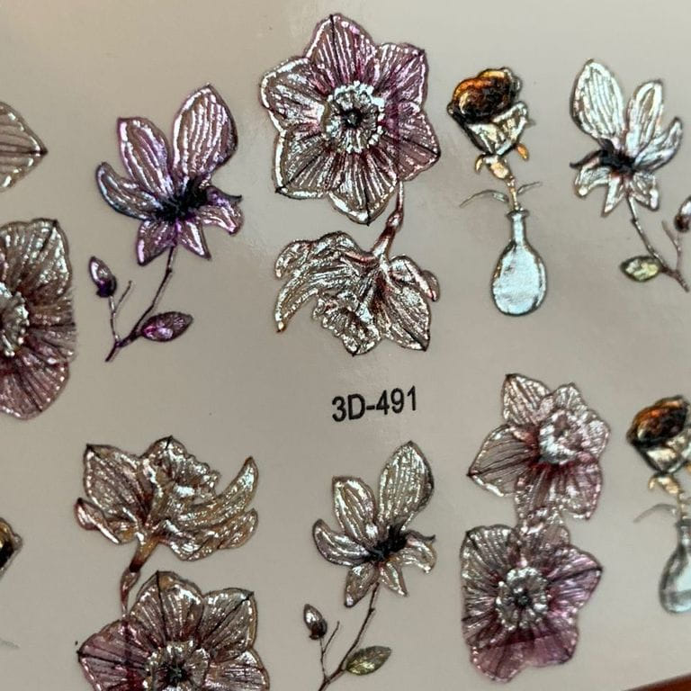 ANNA TKACHEVA Water decal 3D Crystal HT3D491, 1 pz. Istruzioni per l'uso: 1. Effettuare una preparazione standard della lamina ungueale.2. Selezionare il modello appropriato, tagliare l'immagine alla dimensione dell'unghia. 3. Applicare la base,polimerizzare. Applicare uno strato sottile del semipermanente bianco, se richiesto dal design del water decal. Polimerizzare. 4. Applicare uno strato sottile della base. Non polimerizzare. 5. Mettere il water decal su un disco di cotone inumidito con acqua calda (non fredda!) Per circa 10-15 secondi. Spostarlo trasferendo la pellicola sull'unghia. Raddrizzare la pellicola, tirando leggermente verso l'alto il bordo libero. Distendere con cura le pieghe, estraendo i resti di aria e acqua con un panno morbido, un pennello piatto o con le dita. Polimerizzare a tempo pieno. (UV - 2 min, led -30-60 sec). 6. Utilizzando la lima fine, dall'alto verso il basso, rimuovere delicatamente la pellicola in eccesso dal bordo libero dell'unghia. 7. Coprire 2 volte con il top coat, ben sigillando il bordo libero.