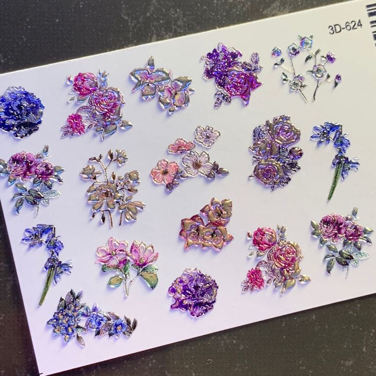 ANNA TKACHEVA Water decal 3D Crystal HT3D624, 1 pz. Istruzioni per l'uso: 1. Effettuare una preparazione standard della lamina ungueale.2. Selezionare il modello appropriato, tagliare l'immagine alla dimensione dell'unghia. 3. Applicare la base,polimerizzare. Applicare uno strato sottile del semipermanente bianco, se richiesto dal design del water decal. Polimerizzare. 4. Applicare uno strato sottile della base. Non polimerizzare. 5. Mettere il water decal su un disco di cotone inumidito con acqua calda (non fredda!) Per circa 10-15 secondi. Spostarlo trasferendo la pellicola sull'unghia. Raddrizzare la pellicola, tirando leggermente verso l'alto il bordo libero. Distendere con cura le pieghe, estraendo i resti di aria e acqua con un panno morbido, un pennello piatto o con le dita. Polimerizzare a tempo pieno. (UV - 2 min, led -30-60 sec). 6. Utilizzando la lima fine, dall'alto verso il basso, rimuovere delicatamente la pellicola in eccesso dal bordo libero dell'unghia. 7. Coprire 2 volte con il top coat, ben sigillando il bordo libero.