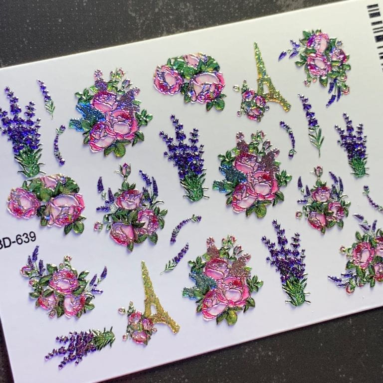 ANNA TKACHEVA Water decal 3D Crystal HT3D639, 1 pz. Istruzioni per l'uso: 1. Effettuare una preparazione standard della lamina ungueale.2. Selezionare il modello appropriato, tagliare l'immagine alla dimensione dell'unghia. 3. Applicare la base,polimerizzare. Applicare uno strato sottile del semipermanente bianco, se richiesto dal design del water decal. Polimerizzare. 4. Applicare uno strato sottile della base. Non polimerizzare. 5. Mettere il water decal su un disco di cotone inumidito con acqua calda (non fredda!) Per circa 10-15 secondi. Spostarlo trasferendo la pellicola sull'unghia. Raddrizzare la pellicola, tirando leggermente verso l'alto il bordo libero. Distendere con cura le pieghe, estraendo i resti di aria e acqua con un panno morbido, un pennello piatto o con le dita. Polimerizzare a tempo pieno. (UV - 2 min, led -30-60 sec). 6. Utilizzando la lima fine, dall'alto verso il basso, rimuovere delicatamente la pellicola in eccesso dal bordo libero dell'unghia. 7. Coprire 2 volte con il top coat, ben sigillando il bordo libero.