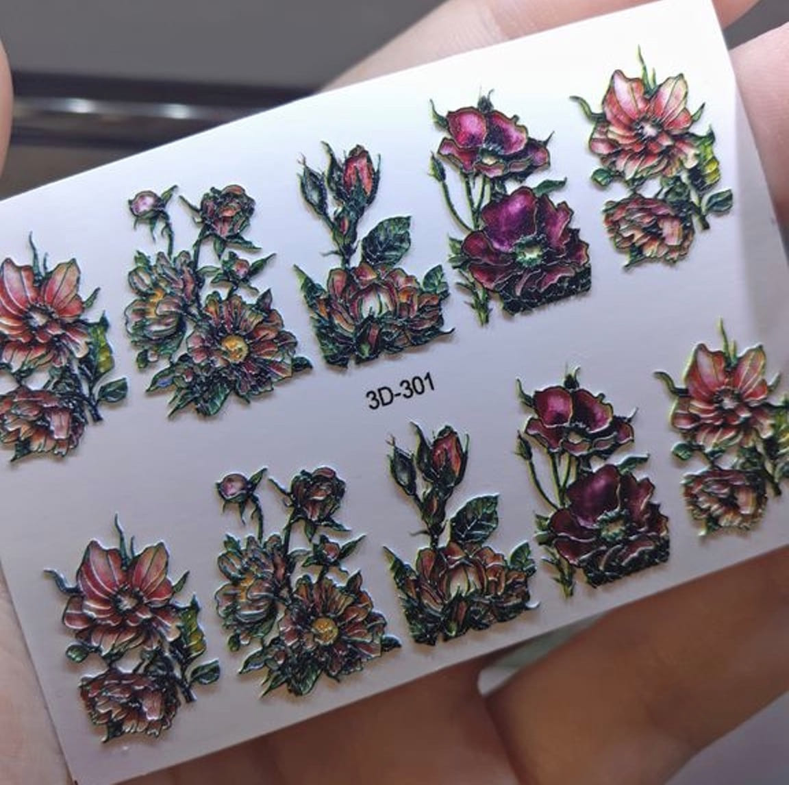 ANNA TKACHEVA Water decal 3D 301 (verde), 1 pz. Istruzioni per l'uso: 1. Effettuare una preparazione standard della lamina ungueale.2. Selezionare il modello appropriato, tagliare l'immagine alla dimensione dell'unghia. 3. Applicare la base,polimerizzare. Applicare uno strato sottile del semipermanente bianco, se richiesto dal design del water decal. Polimerizzare. 4. Applicare uno strato sottile della base. Non polimerizzare. 5. Mettere il water decal su un disco di cotone inumidito con acqua calda (non fredda!) Per circa 10-15 secondi. Spostarlo trasferendo la pellicola sull'unghia. Raddrizzare la pellicola, tirando leggermente verso l'alto il bordo libero. Distendere con cura le pieghe, estraendo i resti di aria e acqua con un panno morbido, un pennello piatto o con le dita. Polimerizzare a tempo pieno. (UV - 2 min, led -30-60 sec). 6. Utilizzando la lima fine, dall'alto verso il basso, rimuovere delicatamente la pellicola in eccesso dal bordo libero dell'unghia. 7. Coprire 2 volte con il top coat, ben sigillando il bordo libero.