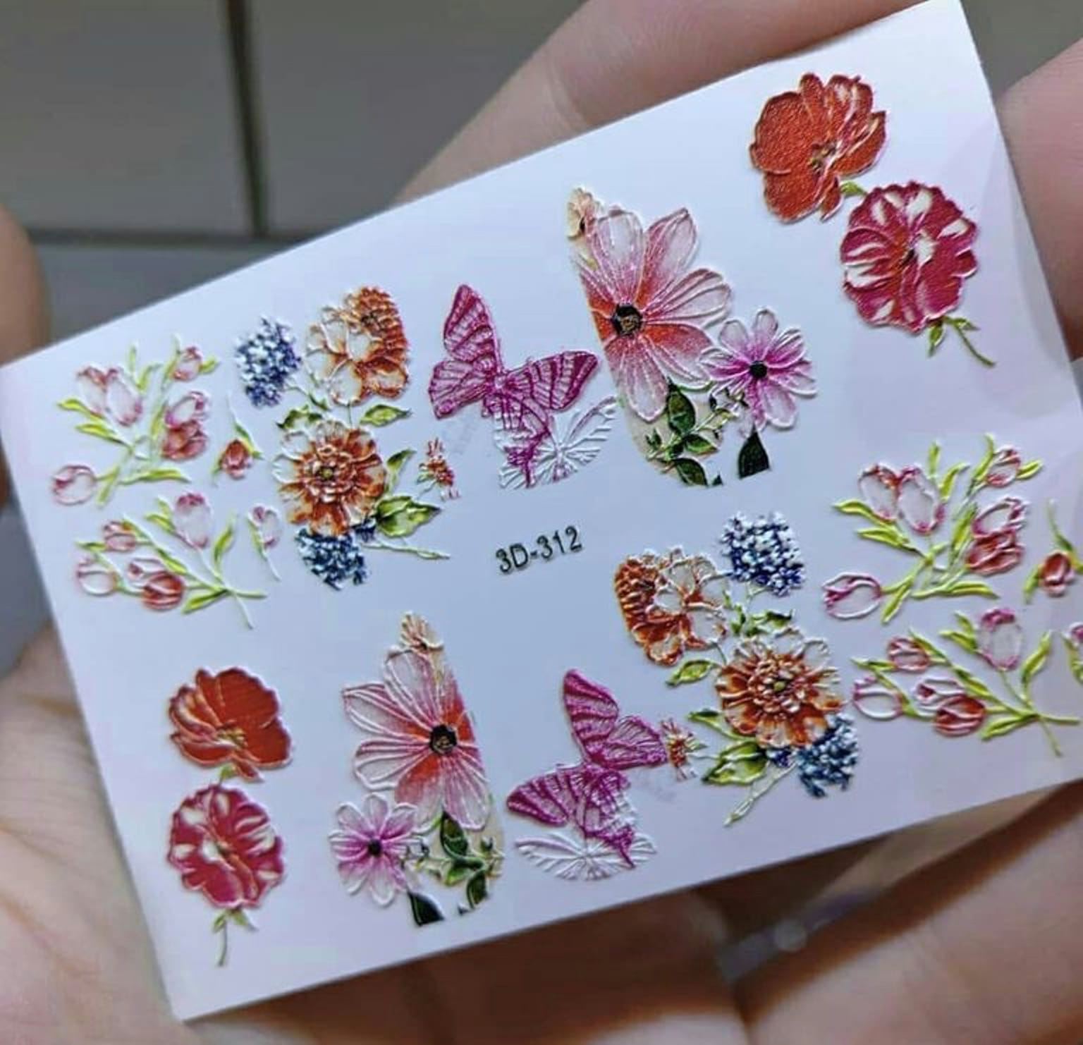 ANNA TKACHEVA Water decal ЗD 312, 1 pz. Istruzioni per l'uso: 1. Effettuare una preparazione standard della lamina ungueale.2. Selezionare il modello appropriato, tagliare l'immagine alla dimensione dell'unghia. 3. Applicare la base,polimerizzare. Applicare uno strato sottile del semipermanente bianco, se richiesto dal design del water decal. Polimerizzare. 4. Applicare uno strato sottile della base. Non polimerizzare. 5. Mettere il water decal su un disco di cotone inumidito con acqua calda (non fredda!) Per circa 10-15 secondi. Spostarlo trasferendo la pellicola sull'unghia. Raddrizzare la pellicola, tirando leggermente verso l'alto il bordo libero. Distendere con cura le pieghe, estraendo i resti di aria e acqua con un panno morbido, un pennello piatto o con le dita. Polimerizzare a tempo pieno. (UV - 2 min, led -30-60 sec). 6. Utilizzando la lima fine, dall'alto verso il basso, rimuovere delicatamente la pellicola in eccesso dal bordo libero dell'unghia. 7. Coprire 2 volte con il top coat, ben sigillando il bordo libero.