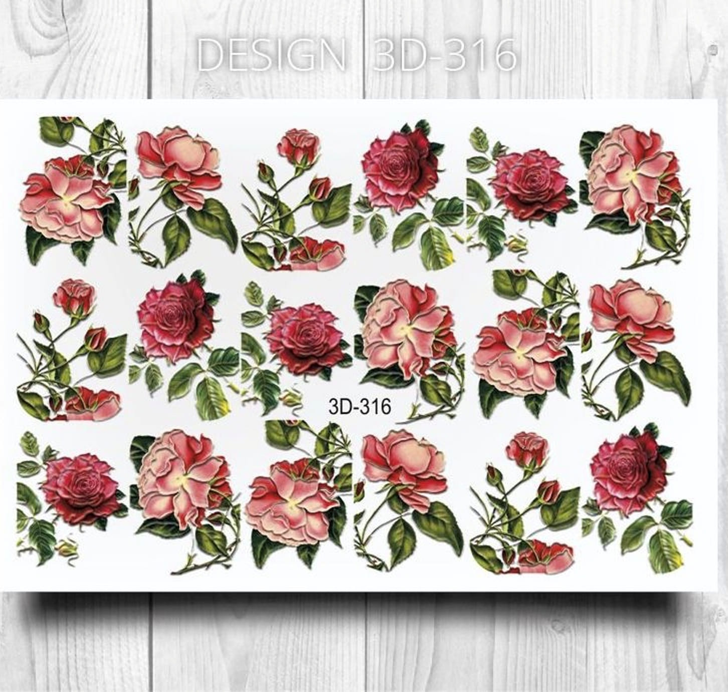 ANNA TKACHEVA Water decal ЗD 316, 1 pz. Istruzioni per l'uso: 1. Effettuare una preparazione standard della lamina ungueale.2. Selezionare il modello appropriato, tagliare l'immagine alla dimensione dell'unghia. 3. Applicare la base,polimerizzare. Applicare uno strato sottile del semipermanente bianco, se richiesto dal design del water decal. Polimerizzare. 4. Applicare uno strato sottile della base. Non polimerizzare. 5. Mettere il water decal su un disco di cotone inumidito con acqua calda (non fredda!) Per circa 10-15 secondi. Spostarlo trasferendo la pellicola sull'unghia. Raddrizzare la pellicola, tirando leggermente verso l'alto il bordo libero. Distendere con cura le pieghe, estraendo i resti di aria e acqua con un panno morbido, un pennello piatto o con le dita. Polimerizzare a tempo pieno. (UV - 2 min, led -30-60 sec). 6. Utilizzando la lima fine, dall'alto verso il basso, rimuovere delicatamente la pellicola in eccesso dal bordo libero dell'unghia. 7. Coprire 2 volte con il top coat, ben sigillando il bordo libero.