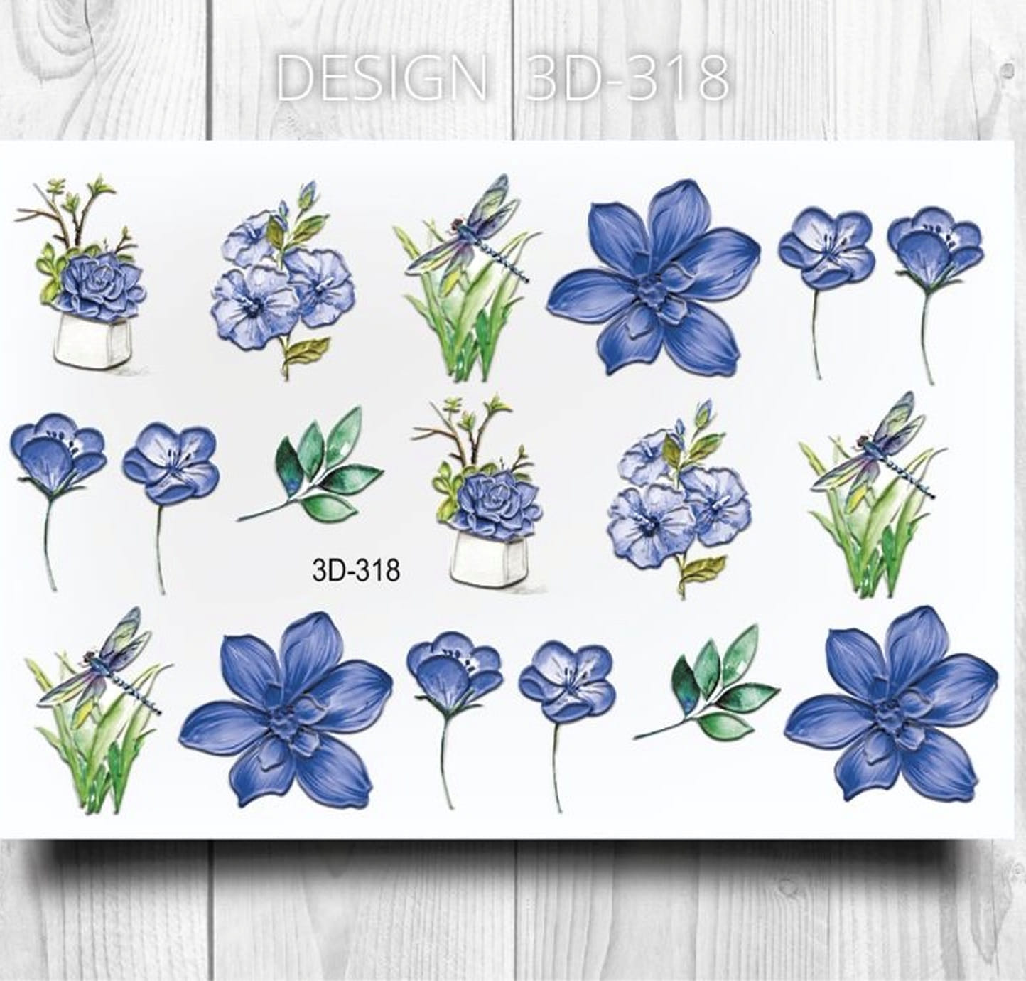 ANNA TKACHEVA Water decal 3D 318, 1 pz. Istruzioni per l'uso: 1. Effettuare una preparazione standard della lamina ungueale.2. Selezionare il modello appropriato, tagliare l'immagine alla dimensione dell'unghia. 3. Applicare la base,polimerizzare. Applicare uno strato sottile del semipermanente bianco, se richiesto dal design del water decal. Polimerizzare. 4. Applicare uno strato sottile della base. Non polimerizzare. 5. Mettere il water decal su un disco di cotone inumidito con acqua calda (non fredda!) Per circa 10-15 secondi. Spostarlo trasferendo la pellicola sull'unghia. Raddrizzare la pellicola, tirando leggermente verso l'alto il bordo libero. Distendere con cura le pieghe, estraendo i resti di aria e acqua con un panno morbido, un pennello piatto o con le dita. Polimerizzare a tempo pieno. (UV - 2 min, led -30-60 sec). 6. Utilizzando la lima fine, dall'alto verso il basso, rimuovere delicatamente la pellicola in eccesso dal bordo libero dell'unghia. 7. Coprire 2 volte con il top coat, ben sigillando il bordo libero.