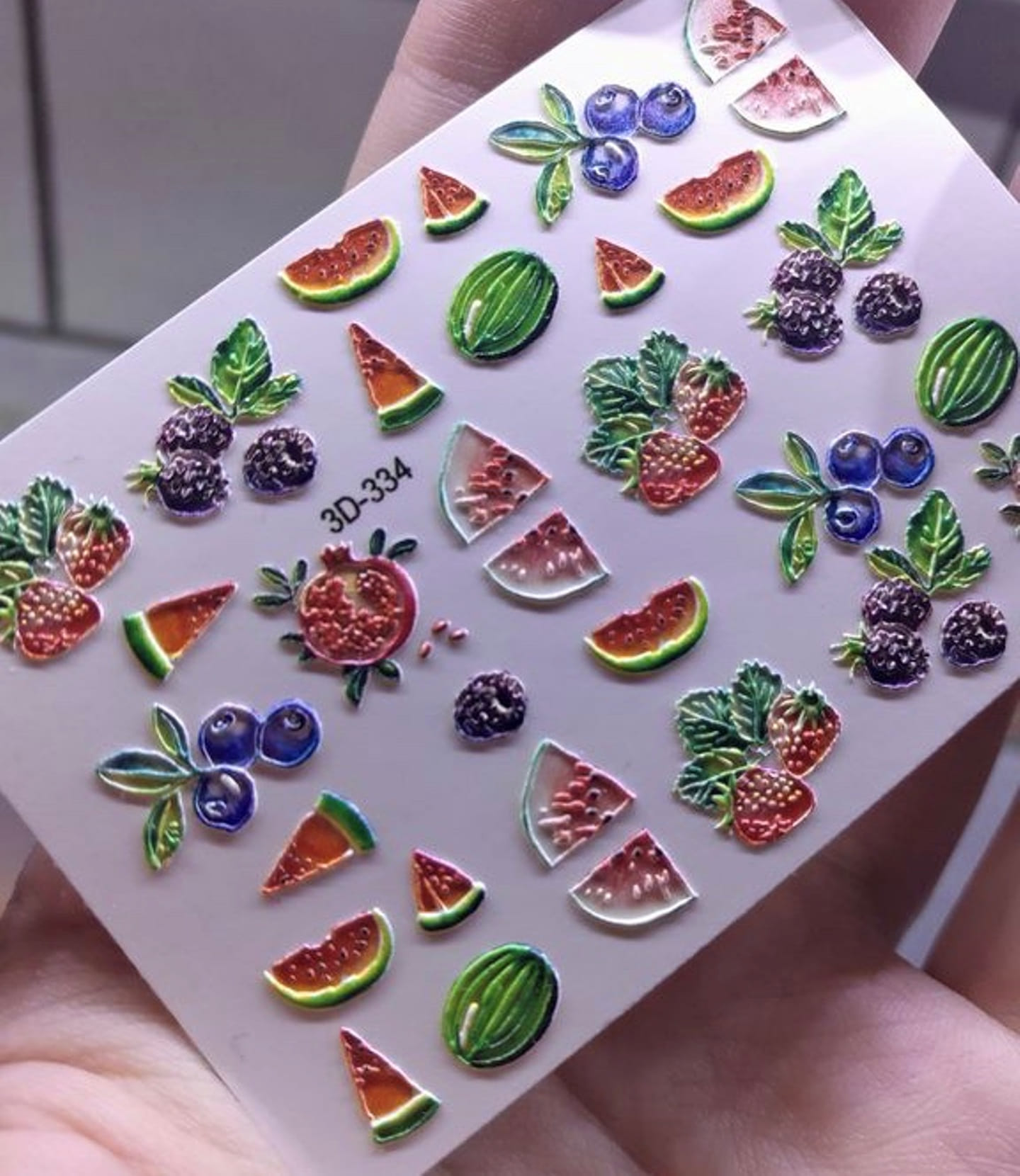 ANNA TKACHEVA Water decal 3D 334, 1 pz. Istruzioni per l'uso: 1. Effettuare una preparazione standard della lamina ungueale.2. Selezionare il modello appropriato, tagliare l'immagine alla dimensione dell'unghia. 3. Applicare la base,polimerizzare. Applicare uno strato sottile del semipermanente bianco, se richiesto dal design del water decal. Polimerizzare. 4. Applicare uno strato sottile della base. Non polimerizzare. 5. Mettere il water decal su un disco di cotone inumidito con acqua calda (non fredda!) Per circa 10-15 secondi. Spostarlo trasferendo la pellicola sull'unghia. Raddrizzare la pellicola, tirando leggermente verso l'alto il bordo libero. Distendere con cura le pieghe, estraendo i resti di aria e acqua con un panno morbido, un pennello piatto o con le dita. Polimerizzare a tempo pieno. (UV - 2 min, led -30-60 sec). 6. Utilizzando la lima fine, dall'alto verso il basso, rimuovere delicatamente la pellicola in eccesso dal bordo libero dell'unghia. 7. Coprire 2 volte con il top coat, ben sigillando il bordo libero.