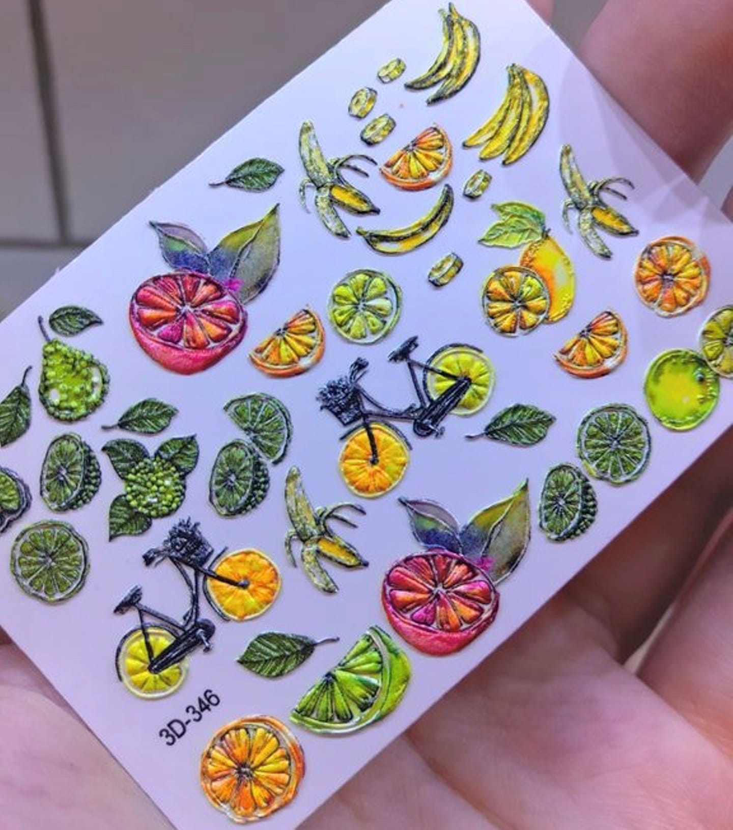 ANNA TKACHEVA Water decal 3D 346, 1 pz. Istruzioni per l'uso: 1. Effettuare una preparazione standard della lamina ungueale.2. Selezionare il modello appropriato, tagliare l'immagine alla dimensione dell'unghia. 3. Applicare la base,polimerizzare. Applicare uno strato sottile del semipermanente bianco, se richiesto dal design del water decal. Polimerizzare. 4. Applicare uno strato sottile della base. Non polimerizzare. 5. Mettere il water decal su un disco di cotone inumidito con acqua calda (non fredda!) Per circa 10-15 secondi. Spostarlo trasferendo la pellicola sull'unghia. Raddrizzare la pellicola, tirando leggermente verso l'alto il bordo libero. Distendere con cura le pieghe, estraendo i resti di aria e acqua con un panno morbido, un pennello piatto o con le dita. Polimerizzare a tempo pieno. (UV - 2 min, led -30-60 sec). 6. Utilizzando la lima fine, dall'alto verso il basso, rimuovere delicatamente la pellicola in eccesso dal bordo libero dell'unghia. 7. Coprire 2 volte con il top coat, ben sigillando il bordo libero.