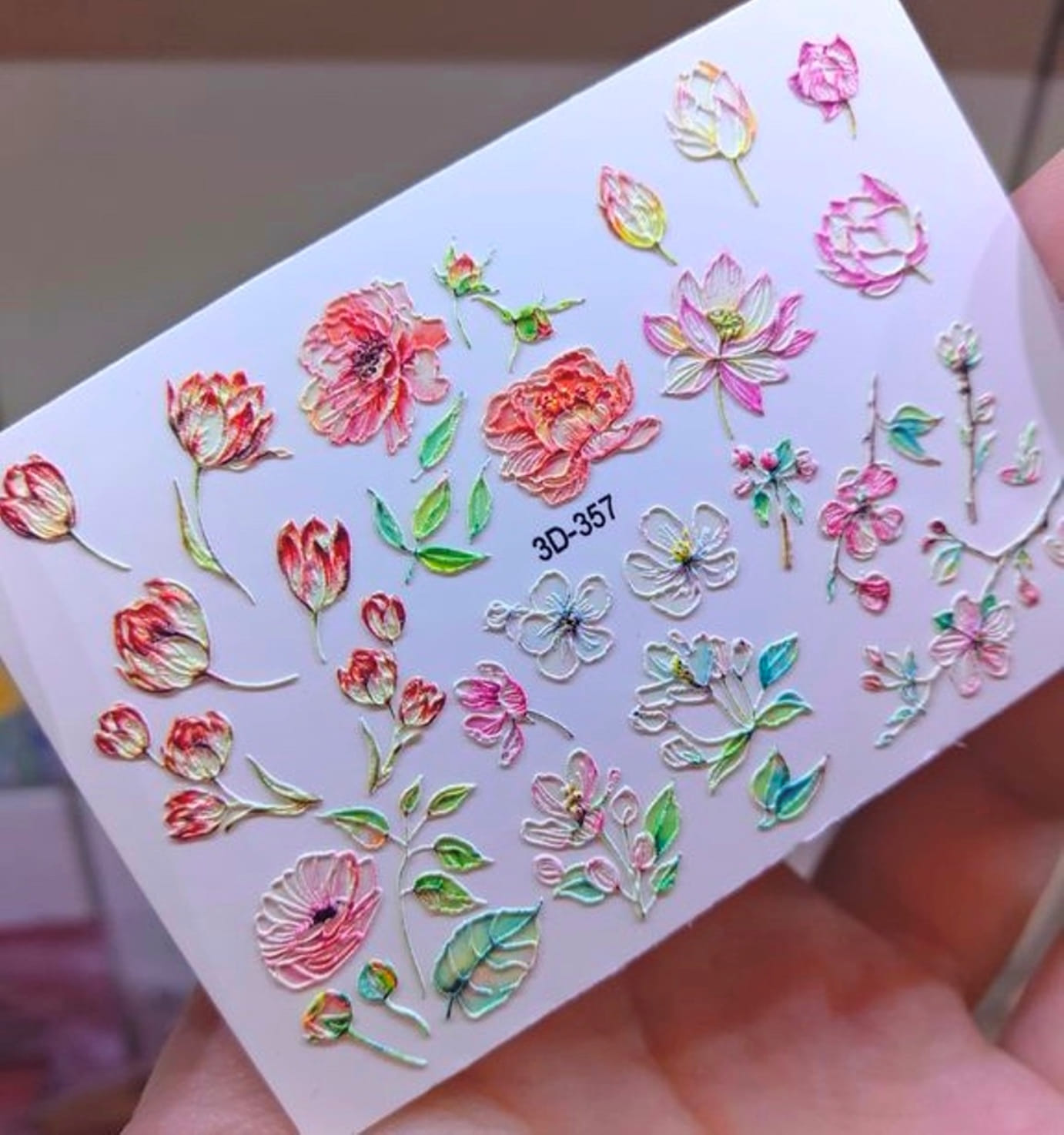 ANNA TKACHEVA Water decal 3D 357, 1 pz. Istruzioni per l'uso: 1. Effettuare una preparazione standard della lamina ungueale.2. Selezionare il modello appropriato, tagliare l'immagine alla dimensione dell'unghia. 3. Applicare la base,polimerizzare. Applicare uno strato sottile del semipermanente bianco, se richiesto dal design del water decal. Polimerizzare. 4. Applicare uno strato sottile della base. Non polimerizzare. 5. Mettere il water decal su un disco di cotone inumidito con acqua calda (non fredda!) Per circa 10-15 secondi. Spostarlo trasferendo la pellicola sull'unghia. Raddrizzare la pellicola, tirando leggermente verso l'alto il bordo libero. Distendere con cura le pieghe, estraendo i resti di aria e acqua con un panno morbido, un pennello piatto o con le dita. Polimerizzare a tempo pieno. (UV - 2 min, led -30-60 sec). 6. Utilizzando la lima fine, dall'alto verso il basso, rimuovere delicatamente la pellicola in eccesso dal bordo libero dell'unghia. 7. Coprire 2 volte con il top coat, ben sigillando il bordo libero.