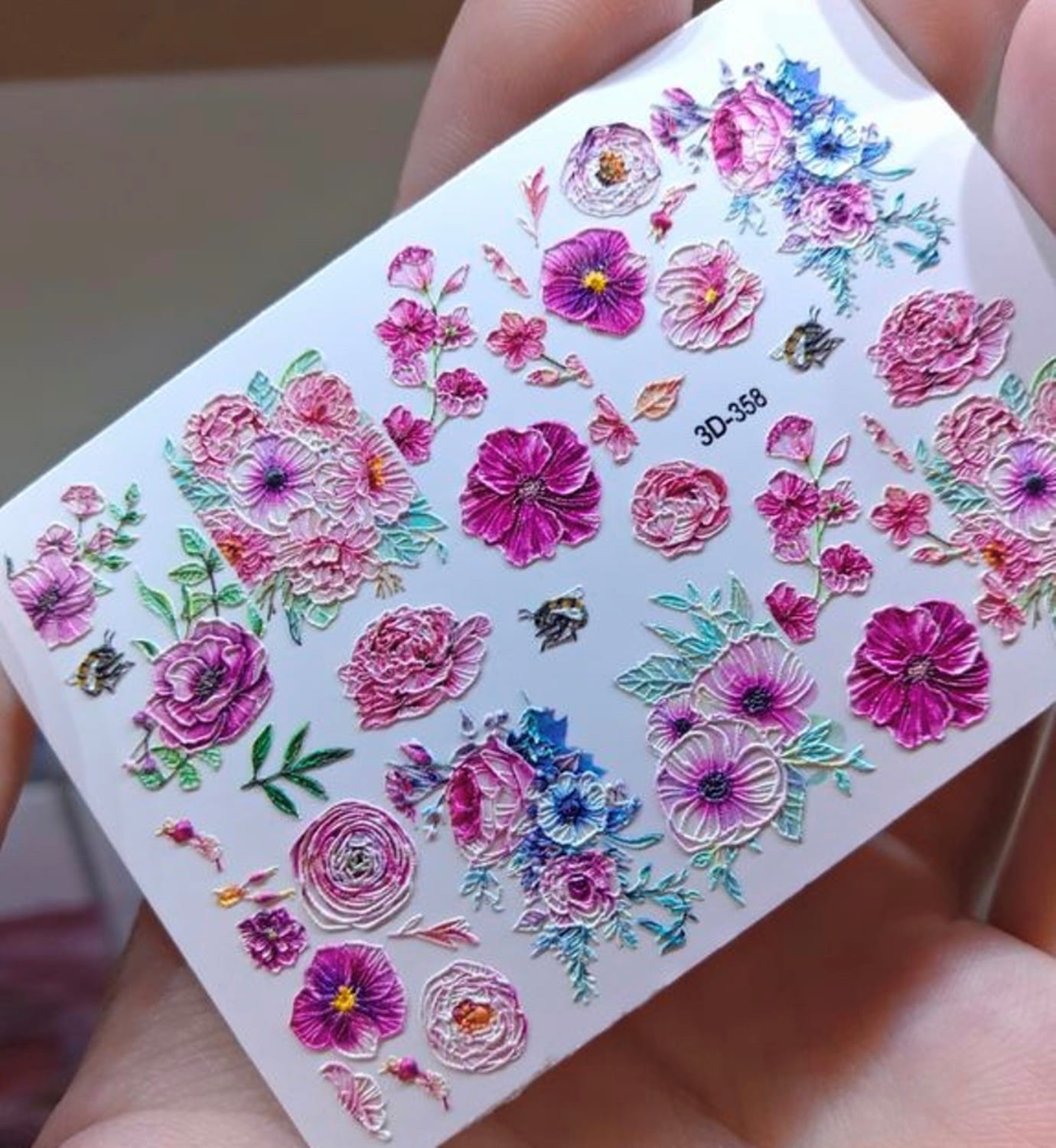 ANNA TKACHEVA Water decal 3D 358, 1 pz. Istruzioni per l'uso: 1. Effettuare una preparazione standard della lamina ungueale.2. Selezionare il modello appropriato, tagliare l'immagine alla dimensione dell'unghia. 3. Applicare la base,polimerizzare. Applicare uno strato sottile del semipermanente bianco, se richiesto dal design del water decal. Polimerizzare. 4. Applicare uno strato sottile della base. Non polimerizzare. 5. Mettere il water decal su un disco di cotone inumidito con acqua calda (non fredda!) Per circa 10-15 secondi. Spostarlo trasferendo la pellicola sull'unghia. Raddrizzare la pellicola, tirando leggermente verso l'alto il bordo libero. Distendere con cura le pieghe, estraendo i resti di aria e acqua con un panno morbido, un pennello piatto o con le dita. Polimerizzare a tempo pieno. (UV - 2 min, led -30-60 sec). 6. Utilizzando la lima fine, dall'alto verso il basso, rimuovere delicatamente la pellicola in eccesso dal bordo libero dell'unghia. 7. Coprire 2 volte con il top coat, ben sigillando il bordo libero.