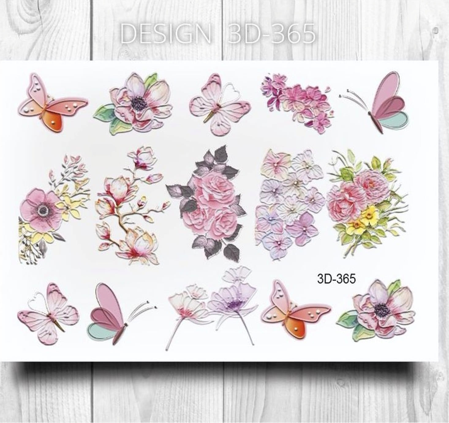 ANNA TKACHEVA Water decal 3D 365, 1 pz. Istruzioni per l'uso: 1. Effettuare una preparazione standard della lamina ungueale.2. Selezionare il modello appropriato, tagliare l'immagine alla dimensione dell'unghia. 3. Applicare la base,polimerizzare. Applicare uno strato sottile del semipermanente bianco, se richiesto dal design del water decal. Polimerizzare. 4. Applicare uno strato sottile della base. Non polimerizzare. 5. Mettere il water decal su un disco di cotone inumidito con acqua calda (non fredda!) Per circa 10-15 secondi. Spostarlo trasferendo la pellicola sull'unghia. Raddrizzare la pellicola, tirando leggermente verso l'alto il bordo libero. Distendere con cura le pieghe, estraendo i resti di aria e acqua con un panno morbido, un pennello piatto o con le dita. Polimerizzare a tempo pieno. (UV - 2 min, led -30-60 sec). 6. Utilizzando la lima fine, dall'alto verso il basso, rimuovere delicatamente la pellicola in eccesso dal bordo libero dell'unghia. 7. Coprire 2 volte con il top coat, ben sigillando il bordo libero.