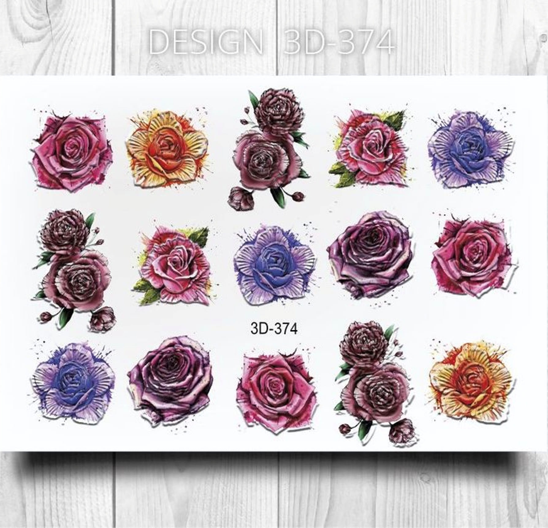 ANNA TKACHEVA Water decal 3D 374, 1 pz. Istruzioni per l'uso: 1. Effettuare una preparazione standard della lamina ungueale.2. Selezionare il modello appropriato, tagliare l'immagine alla dimensione dell'unghia. 3. Applicare la base,polimerizzare. Applicare uno strato sottile del semipermanente bianco, se richiesto dal design del water decal. Polimerizzare. 4. Applicare uno strato sottile della base. Non polimerizzare. 5. Mettere il water decal su un disco di cotone inumidito con acqua calda (non fredda!) Per circa 10-15 secondi. Spostarlo trasferendo la pellicola sull'unghia. Raddrizzare la pellicola, tirando leggermente verso l'alto il bordo libero. Distendere con cura le pieghe, estraendo i resti di aria e acqua con un panno morbido, un pennello piatto o con le dita. Polimerizzare a tempo pieno. (UV - 2 min, led -30-60 sec). 6. Utilizzando la lima fine, dall'alto verso il basso, rimuovere delicatamente la pellicola in eccesso dal bordo libero dell'unghia. 7. Coprire 2 volte con il top coat, ben sigillando il bordo libero.