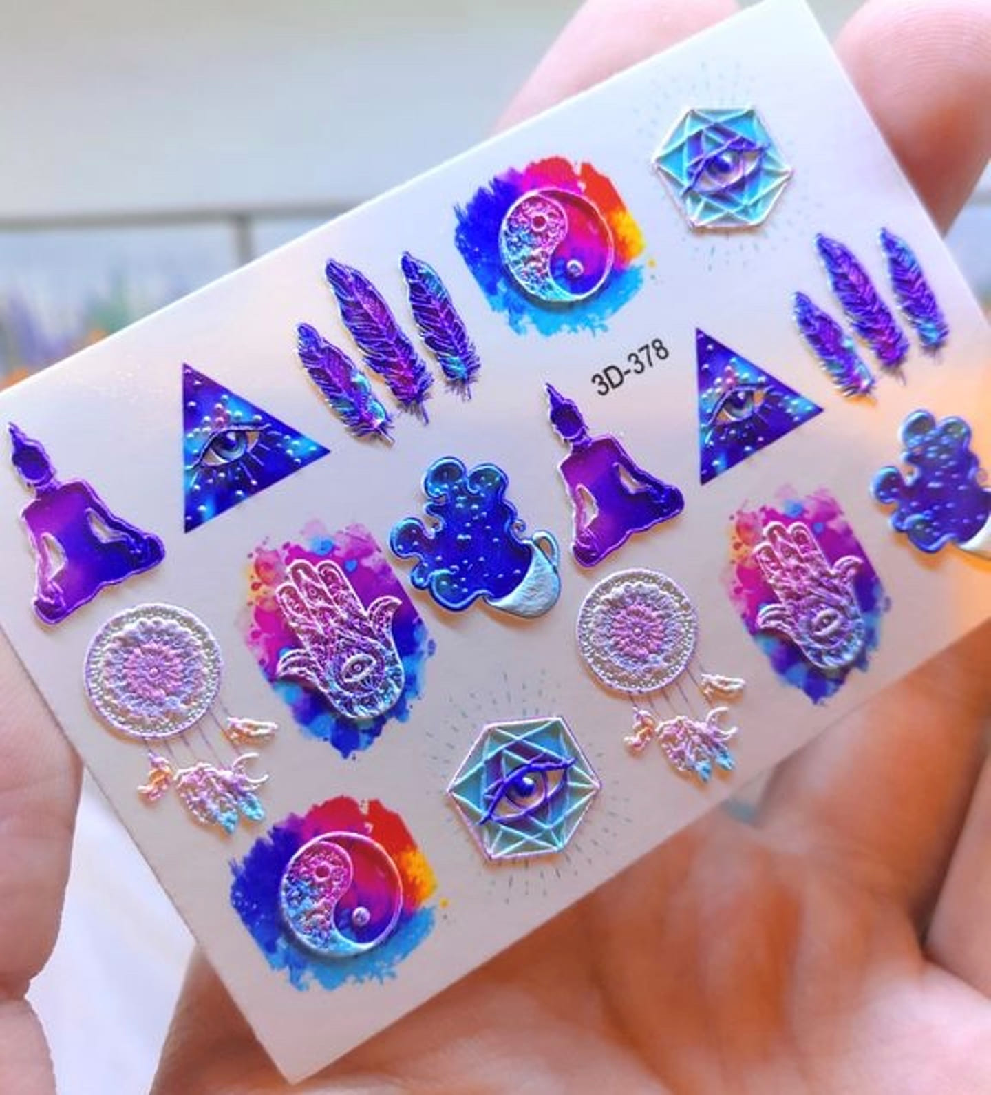 ANNA TKACHEVA Water decal 3D 378, 1 pz. Istruzioni per l'uso: 1. Effettuare una preparazione standard della lamina ungueale.2. Selezionare il modello appropriato, tagliare l'immagine alla dimensione dell'unghia. 3. Applicare la base,polimerizzare. Applicare uno strato sottile del semipermanente bianco, se richiesto dal design del water decal. Polimerizzare. 4. Applicare uno strato sottile della base. Non polimerizzare. 5. Mettere il water decal su un disco di cotone inumidito con acqua calda (non fredda!) Per circa 10-15 secondi. Spostarlo trasferendo la pellicola sull'unghia. Raddrizzare la pellicola, tirando leggermente verso l'alto il bordo libero. Distendere con cura le pieghe, estraendo i resti di aria e acqua con un panno morbido, un pennello piatto o con le dita. Polimerizzare a tempo pieno. (UV - 2 min, led -30-60 sec). 6. Utilizzando la lima fine, dall'alto verso il basso, rimuovere delicatamente la pellicola in eccesso dal bordo libero dell'unghia. 7. Coprire 2 volte con il top coat, ben sigillando il bordo libero.