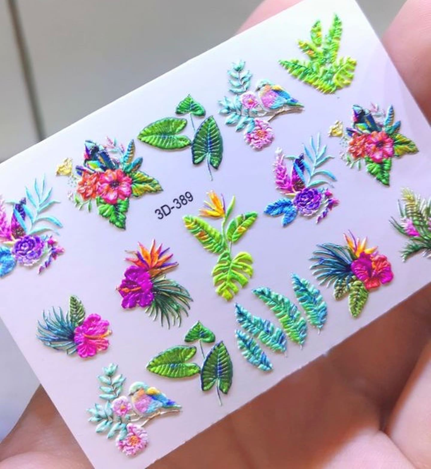 ANNA TKACHEVA Water decal 3D 389, 1 pz. Istruzioni per l'uso: 1. Effettuare una preparazione standard della lamina ungueale.2. Selezionare il modello appropriato, tagliare l'immagine alla dimensione dell'unghia. 3. Applicare la base,polimerizzare. Applicare uno strato sottile del semipermanente bianco, se richiesto dal design del water decal. Polimerizzare. 4. Applicare uno strato sottile della base. Non polimerizzare. 5. Mettere il water decal su un disco di cotone inumidito con acqua calda (non fredda!) Per circa 10-15 secondi. Spostarlo trasferendo la pellicola sull'unghia. Raddrizzare la pellicola, tirando leggermente verso l'alto il bordo libero. Distendere con cura le pieghe, estraendo i resti di aria e acqua con un panno morbido, un pennello piatto o con le dita. Polimerizzare a tempo pieno. (UV - 2 min, led -30-60 sec). 6. Utilizzando la lima fine, dall'alto verso il basso, rimuovere delicatamente la pellicola in eccesso dal bordo libero dell'unghia. 7. Coprire 2 volte con il top coat, ben sigillando il bordo libero.