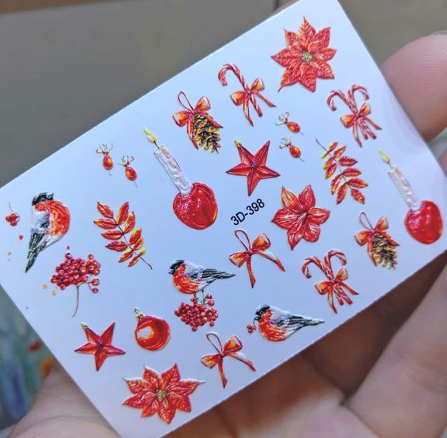 ANNA TKACHEVA Water decal 3D 398, 1 pz. Istruzioni per l'uso: 1. Effettuare una preparazione standard della lamina ungueale.2. Selezionare il modello appropriato, tagliare l'immagine alla dimensione dell'unghia. 3. Applicare la base,polimerizzare. Applicare uno strato sottile del semipermanente bianco, se richiesto dal design del water decal. Polimerizzare. 4. Applicare uno strato sottile della base. Non polimerizzare. 5. Mettere il water decal su un disco di cotone inumidito con acqua calda (non fredda!) Per circa 10-15 secondi. Spostarlo trasferendo la pellicola sull'unghia. Raddrizzare la pellicola, tirando leggermente verso l'alto il bordo libero. Distendere con cura le pieghe, estraendo i resti di aria e acqua con un panno morbido, un pennello piatto o con le dita. Polimerizzare a tempo pieno. (UV - 2 min, led -30-60 sec). 6. Utilizzando la lima fine, dall'alto verso il basso, rimuovere delicatamente la pellicola in eccesso dal bordo libero dell'unghia. 7. Coprire 2 volte con il top coat, ben sigillando il bordo libero.