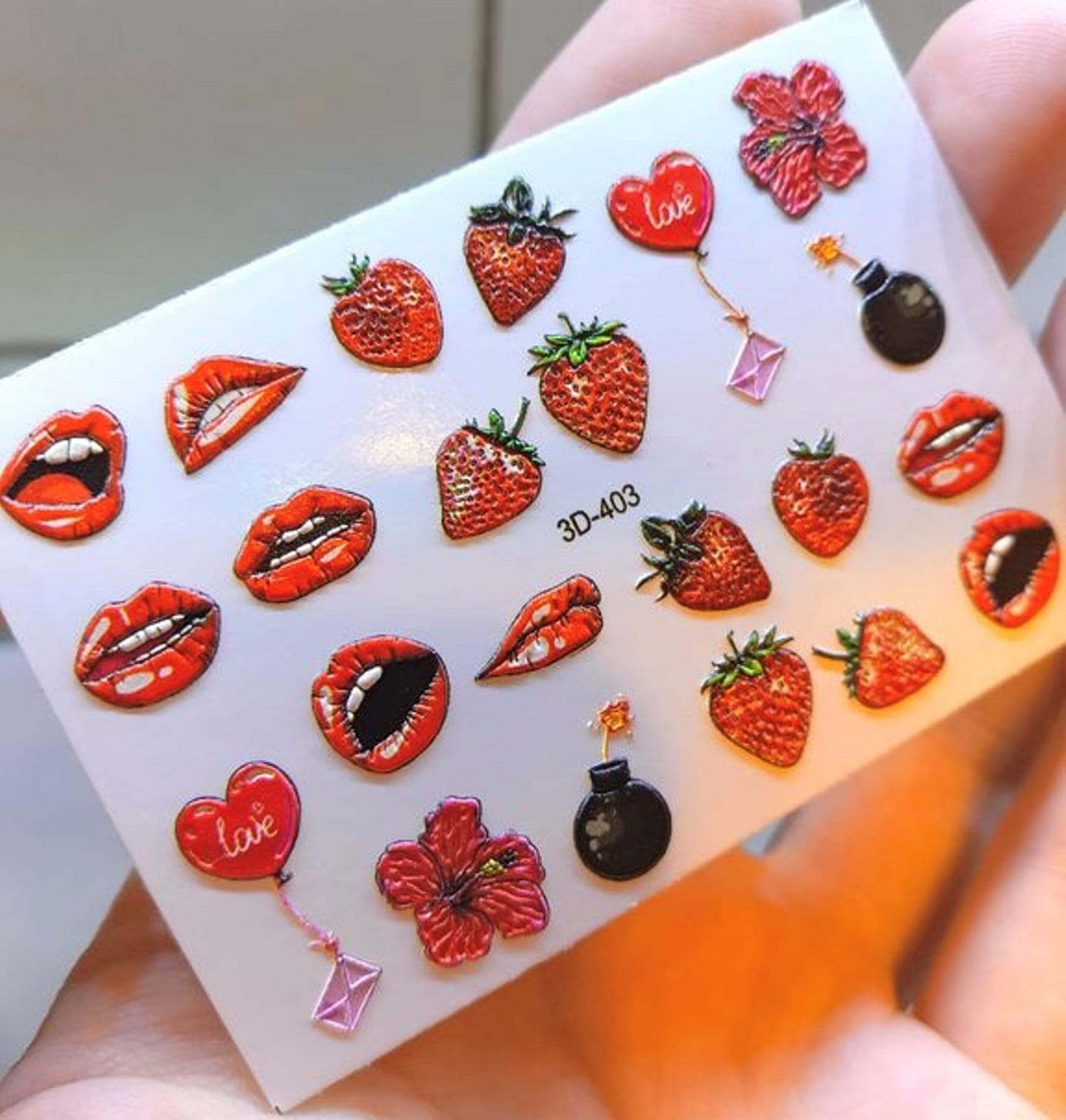 ANNA TKACHEVA Water decal 3D 403, 1 pz. Istruzioni per l'uso: 1. Effettuare una preparazione standard della lamina ungueale.2. Selezionare il modello appropriato, tagliare l'immagine alla dimensione dell'unghia. 3. Applicare la base,polimerizzare. Applicare uno strato sottile del semipermanente bianco, se richiesto dal design del water decal. Polimerizzare. 4. Applicare uno strato sottile della base. Non polimerizzare. 5. Mettere il water decal su un disco di cotone inumidito con acqua calda (non fredda!) Per circa 10-15 secondi. Spostarlo trasferendo la pellicola sull'unghia. Raddrizzare la pellicola, tirando leggermente verso l'alto il bordo libero. Distendere con cura le pieghe, estraendo i resti di aria e acqua con un panno morbido, un pennello piatto o con le dita. Polimerizzare a tempo pieno. (UV - 2 min, led -30-60 sec). 6. Utilizzando la lima fine, dall'alto verso il basso, rimuovere delicatamente la pellicola in eccesso dal bordo libero dell'unghia. 7. Coprire 2 volte con il top coat, ben sigillando il bordo libero.