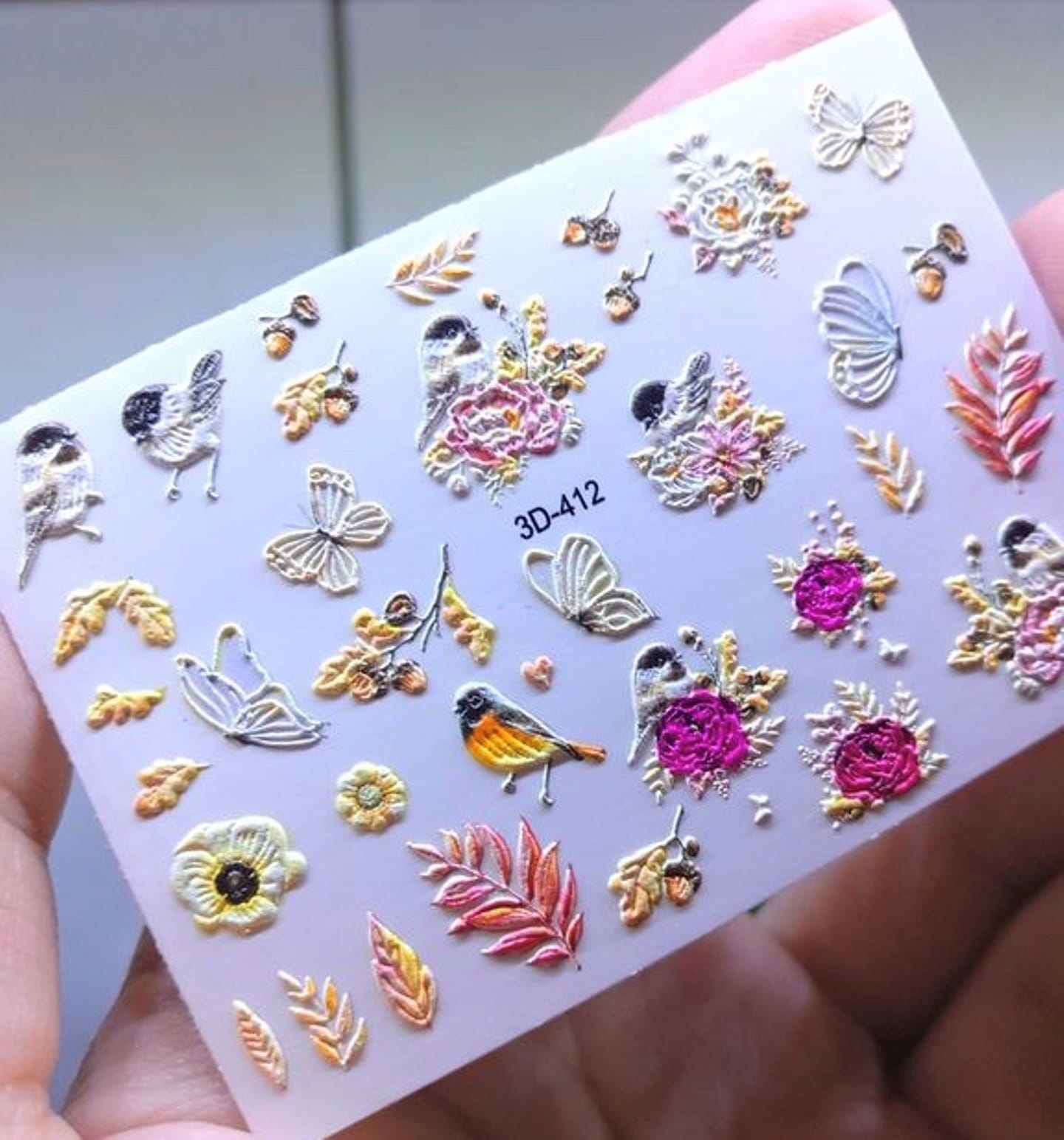 ANNA TKACHEVA Water decal 3D 412, 1 pz. Istruzioni per l'uso: 1. Effettuare una preparazione standard della lamina ungueale.2. Selezionare il modello appropriato, tagliare l'immagine alla dimensione dell'unghia. 3. Applicare la base,polimerizzare. Applicare uno strato sottile del semipermanente bianco, se richiesto dal design del water decal. Polimerizzare. 4. Applicare uno strato sottile della base. Non polimerizzare. 5. Mettere il water decal su un disco di cotone inumidito con acqua calda (non fredda!) Per circa 10-15 secondi. Spostarlo trasferendo la pellicola sull'unghia. Raddrizzare la pellicola, tirando leggermente verso l'alto il bordo libero. Distendere con cura le pieghe, estraendo i resti di aria e acqua con un panno morbido, un pennello piatto o con le dita. Polimerizzare a tempo pieno. (UV - 2 min, led -30-60 sec). 6. Utilizzando la lima fine, dall'alto verso il basso, rimuovere delicatamente la pellicola in eccesso dal bordo libero dell'unghia. 7. Coprire 2 volte con il top coat, ben sigillando il bordo libero.
