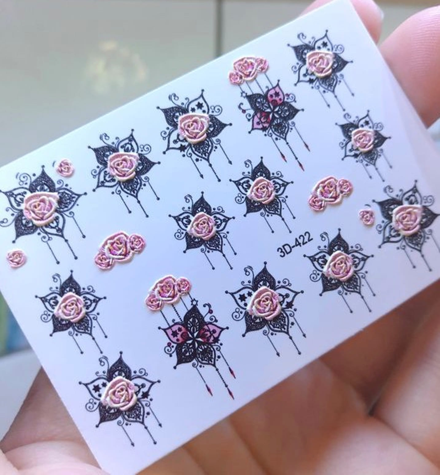 ANNA TKACHEVA Water decal 3D 422, 1 pz. Istruzioni per l'uso: 1. Effettuare una preparazione standard della lamina ungueale.2. Selezionare il modello appropriato, tagliare l'immagine alla dimensione dell'unghia. 3. Applicare la base,polimerizzare. Applicare uno strato sottile del semipermanente bianco, se richiesto dal design del water decal. Polimerizzare. 4. Applicare uno strato sottile della base. Non polimerizzare. 5. Mettere il water decal su un disco di cotone inumidito con acqua calda (non fredda!) Per circa 10-15 secondi. Spostarlo trasferendo la pellicola sull'unghia. Raddrizzare la pellicola, tirando leggermente verso l'alto il bordo libero. Distendere con cura le pieghe, estraendo i resti di aria e acqua con un panno morbido, un pennello piatto o con le dita. Polimerizzare a tempo pieno. (UV - 2 min, led -30-60 sec). 6. Utilizzando la lima fine, dall'alto verso il basso, rimuovere delicatamente la pellicola in eccesso dal bordo libero dell'unghia. 7. Coprire 2 volte con il top coat, ben sigillando il bordo libero.