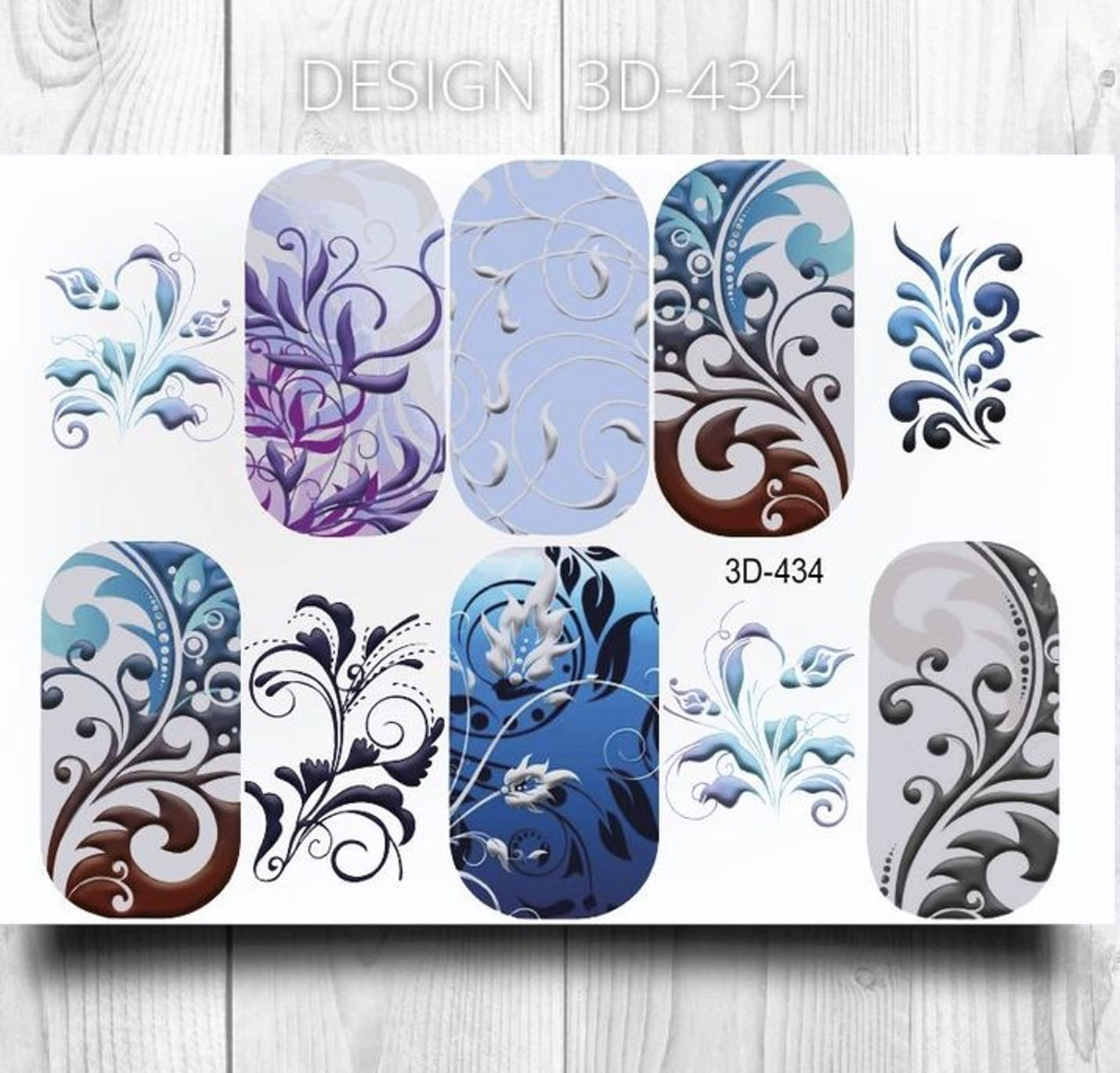ANNA TKACHEVA Water decal 3D 434, 1 pz. Istruzioni per l'uso: 1. Effettuare una preparazione standard della lamina ungueale.2. Selezionare il modello appropriato, tagliare l'immagine alla dimensione dell'unghia. 3. Applicare la base,polimerizzare. Applicare uno strato sottile del semipermanente bianco, se richiesto dal design del water decal. Polimerizzare. 4. Applicare uno strato sottile della base. Non polimerizzare. 5. Mettere il water decal su un disco di cotone inumidito con acqua calda (non fredda!) Per circa 10-15 secondi. Spostarlo trasferendo la pellicola sull'unghia. Raddrizzare la pellicola, tirando leggermente verso l'alto il bordo libero. Distendere con cura le pieghe, estraendo i resti di aria e acqua con un panno morbido, un pennello piatto o con le dita. Polimerizzare a tempo pieno. (UV - 2 min, led -30-60 sec). 6. Utilizzando la lima fine, dall'alto verso il basso, rimuovere delicatamente la pellicola in eccesso dal bordo libero dell'unghia. 7. Coprire 2 volte con il top coat, ben sigillando il bordo libero.