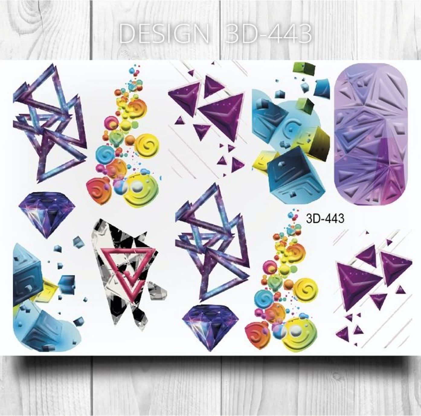 ANNA TKACHEVA Water decal 3D 443, 1 pz. Istruzioni per l'uso: 1. Effettuare una preparazione standard della lamina ungueale.2. Selezionare il modello appropriato, tagliare l'immagine alla dimensione dell'unghia. 3. Applicare la base,polimerizzare. Applicare uno strato sottile del semipermanente bianco, se richiesto dal design del water decal. Polimerizzare. 4. Applicare uno strato sottile della base. Non polimerizzare. 5. Mettere il water decal su un disco di cotone inumidito con acqua calda (non fredda!) Per circa 10-15 secondi. Spostarlo trasferendo la pellicola sull'unghia. Raddrizzare la pellicola, tirando leggermente verso l'alto il bordo libero. Distendere con cura le pieghe, estraendo i resti di aria e acqua con un panno morbido, un pennello piatto o con le dita. Polimerizzare a tempo pieno. (UV - 2 min, led -30-60 sec). 6. Utilizzando la lima fine, dall'alto verso il basso, rimuovere delicatamente la pellicola in eccesso dal bordo libero dell'unghia. 7. Coprire 2 volte con il top coat, ben sigillando il bordo libero.