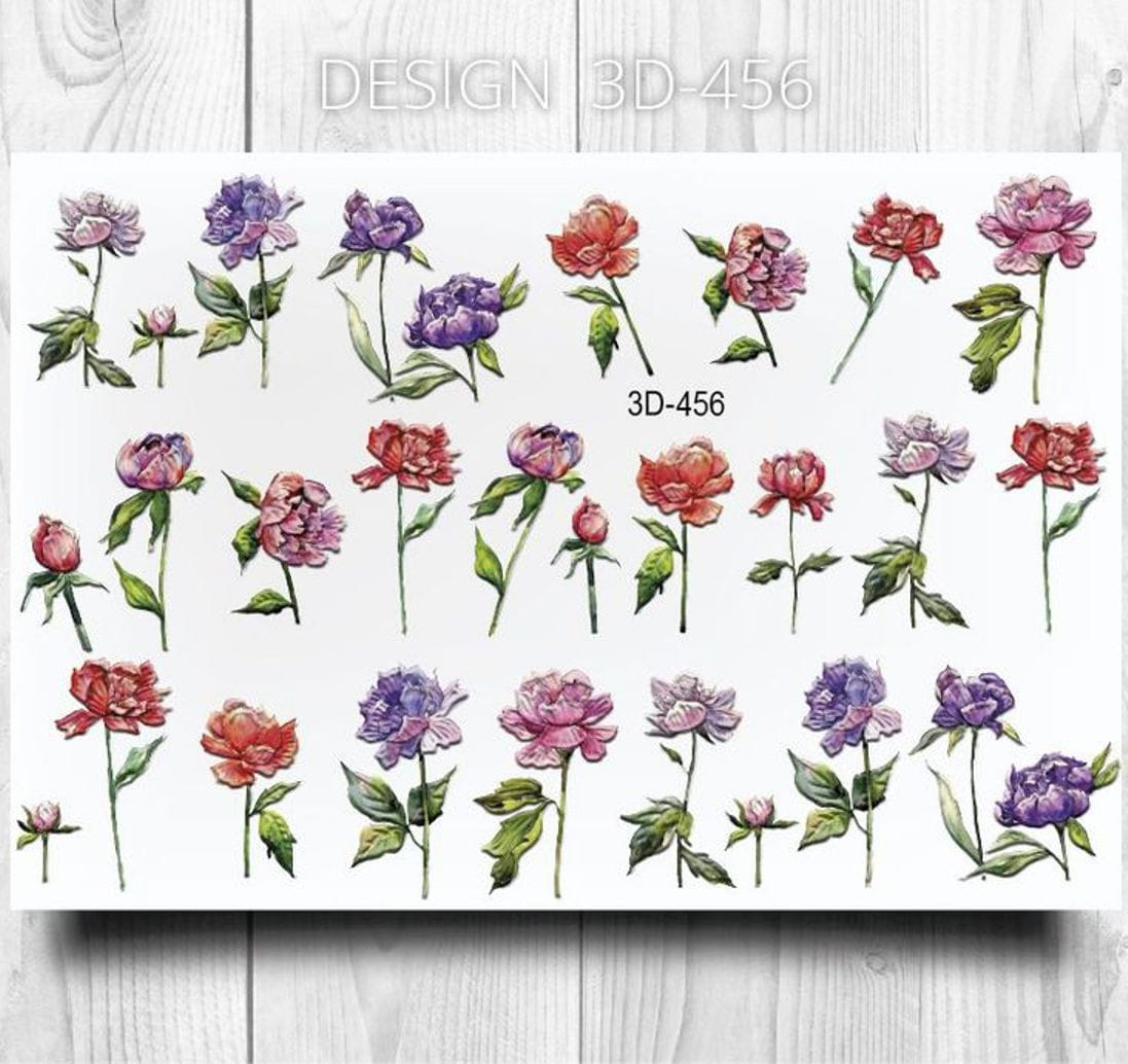 ANNA TKACHEVA Water decal 3D 456, 1 pz. Istruzioni per l'uso: 1. Effettuare una preparazione standard della lamina ungueale.2. Selezionare il modello appropriato, tagliare l'immagine alla dimensione dell'unghia. 3. Applicare la base,polimerizzare. Applicare uno strato sottile del semipermanente bianco, se richiesto dal design del water decal. Polimerizzare. 4. Applicare uno strato sottile della base. Non polimerizzare. 5. Mettere il water decal su un disco di cotone inumidito con acqua calda (non fredda!) Per circa 10-15 secondi. Spostarlo trasferendo la pellicola sull'unghia. Raddrizzare la pellicola, tirando leggermente verso l'alto il bordo libero. Distendere con cura le pieghe, estraendo i resti di aria e acqua con un panno morbido, un pennello piatto o con le dita. Polimerizzare a tempo pieno. (UV - 2 min, led -30-60 sec). 6. Utilizzando la lima fine, dall'alto verso il basso, rimuovere delicatamente la pellicola in eccesso dal bordo libero dell'unghia. 7. Coprire 2 volte con il top coat, ben sigillando il bordo libero.