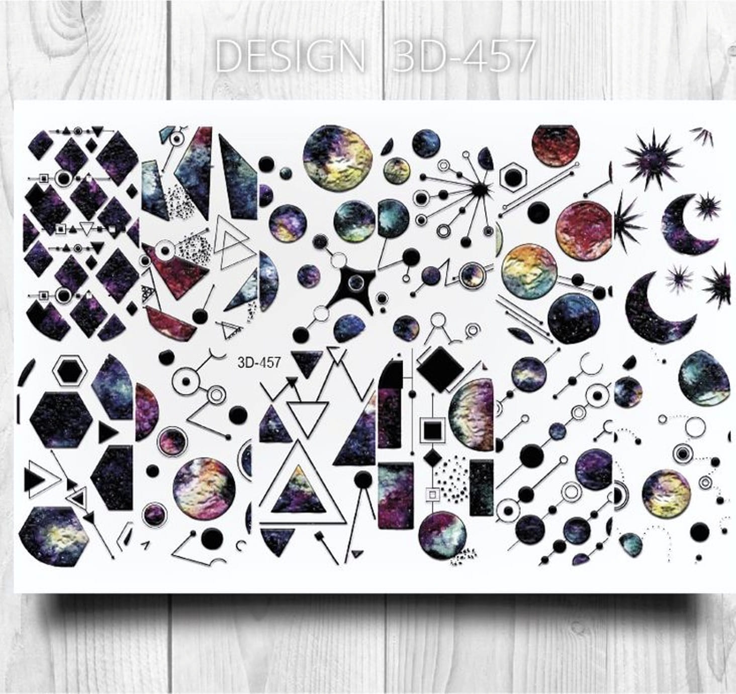 ANNA TKACHEVA Water decal 3D 457, 1 pz. Istruzioni per l'uso: 1. Effettuare una preparazione standard della lamina ungueale.2. Selezionare il modello appropriato, tagliare l'immagine alla dimensione dell'unghia. 3. Applicare la base,polimerizzare. Applicare uno strato sottile del semipermanente bianco, se richiesto dal design del water decal. Polimerizzare. 4. Applicare uno strato sottile della base. Non polimerizzare. 5. Mettere il water decal su un disco di cotone inumidito con acqua calda (non fredda!) Per circa 10-15 secondi. Spostarlo trasferendo la pellicola sull'unghia. Raddrizzare la pellicola, tirando leggermente verso l'alto il bordo libero. Distendere con cura le pieghe, estraendo i resti di aria e acqua con un panno morbido, un pennello piatto o con le dita. Polimerizzare a tempo pieno. (UV - 2 min, led -30-60 sec). 6. Utilizzando la lima fine, dall'alto verso il basso, rimuovere delicatamente la pellicola in eccesso dal bordo libero dell'unghia. 7. Coprire 2 volte con il top coat, ben sigillando il bordo libero.