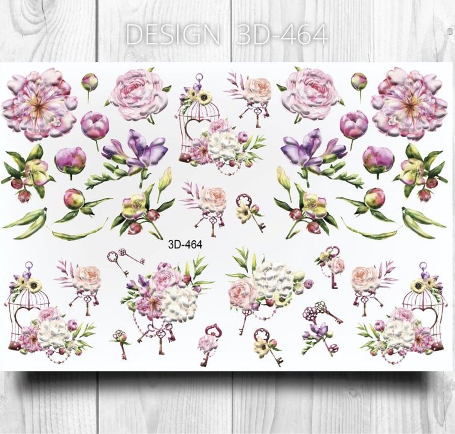ANNA TKACHEVA Water decal 3D 464, 1 pz. Istruzioni per l'uso: 1. Effettuare una preparazione standard della lamina ungueale.2. Selezionare il modello appropriato, tagliare l'immagine alla dimensione dell'unghia. 3. Applicare la base,polimerizzare. Applicare uno strato sottile del semipermanente bianco, se richiesto dal design del water decal. Polimerizzare. 4. Applicare uno strato sottile della base. Non polimerizzare. 5. Mettere il water decal su un disco di cotone inumidito con acqua calda (non fredda!) Per circa 10-15 secondi. Spostarlo trasferendo la pellicola sull'unghia. Raddrizzare la pellicola, tirando leggermente verso l'alto il bordo libero. Distendere con cura le pieghe, estraendo i resti di aria e acqua con un panno morbido, un pennello piatto o con le dita. Polimerizzare a tempo pieno. (UV - 2 min, led -30-60 sec). 6. Utilizzando la lima fine, dall'alto verso il basso, rimuovere delicatamente la pellicola in eccesso dal bordo libero dell'unghia. 7. Coprire 2 volte con il top coat, ben sigillando il bordo libero.