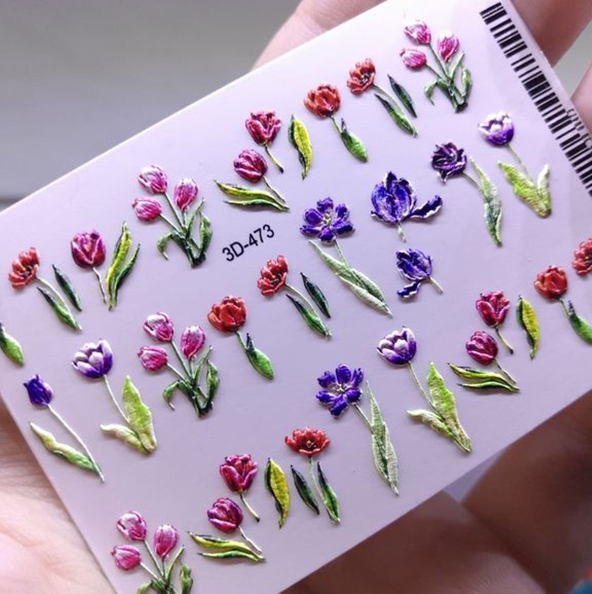 ANNA TKACHEVA Water decal 3D 473, 1 pz. Istruzioni per l'uso: 1. Effettuare una preparazione standard della lamina ungueale.2. Selezionare il modello appropriato, tagliare l'immagine alla dimensione dell'unghia. 3. Applicare la base,polimerizzare. Applicare uno strato sottile del semipermanente bianco, se richiesto dal design del water decal. Polimerizzare. 4. Applicare uno strato sottile della base. Non polimerizzare. 5. Mettere il water decal su un disco di cotone inumidito con acqua calda (non fredda!) Per circa 10-15 secondi. Spostarlo trasferendo la pellicola sull'unghia. Raddrizzare la pellicola, tirando leggermente verso l'alto il bordo libero. Distendere con cura le pieghe, estraendo i resti di aria e acqua con un panno morbido, un pennello piatto o con le dita. Polimerizzare a tempo pieno. (UV - 2 min, led -30-60 sec). 6. Utilizzando la lima fine, dall'alto verso il basso, rimuovere delicatamente la pellicola in eccesso dal bordo libero dell'unghia. 7. Coprire 2 volte con il top coat, ben sigillando il bordo libero.