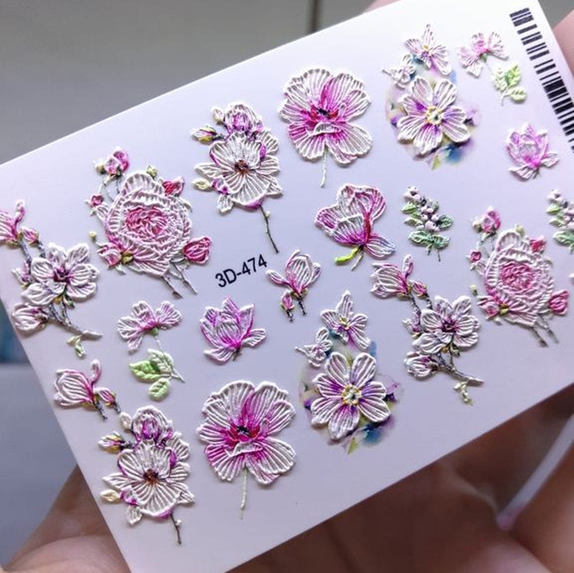 ANNA TKACHEVA Water decal 3D 474, 1 pz. Istruzioni per l'uso: 1. Effettuare una preparazione standard della lamina ungueale.2. Selezionare il modello appropriato, tagliare l'immagine alla dimensione dell'unghia. 3. Applicare la base,polimerizzare. Applicare uno strato sottile del semipermanente bianco, se richiesto dal design del water decal. Polimerizzare. 4. Applicare uno strato sottile della base. Non polimerizzare. 5. Mettere il water decal su un disco di cotone inumidito con acqua calda (non fredda!) Per circa 10-15 secondi. Spostarlo trasferendo la pellicola sull'unghia. Raddrizzare la pellicola, tirando leggermente verso l'alto il bordo libero. Distendere con cura le pieghe, estraendo i resti di aria e acqua con un panno morbido, un pennello piatto o con le dita. Polimerizzare a tempo pieno. (UV - 2 min, led -30-60 sec). 6. Utilizzando la lima fine, dall'alto verso il basso, rimuovere delicatamente la pellicola in eccesso dal bordo libero dell'unghia. 7. Coprire 2 volte con il top coat, ben sigillando il bordo libero.