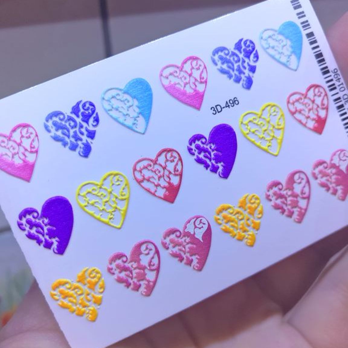 ANNA TKACHEVA Water decal 3D 496, 1 pz. Istruzioni per l'uso: 1. Effettuare una preparazione standard della lamina ungueale.2. Selezionare il modello appropriato, tagliare l'immagine alla dimensione dell'unghia. 3. Applicare la base,polimerizzare. Applicare uno strato sottile del semipermanente bianco, se richiesto dal design del water decal. Polimerizzare. 4. Applicare uno strato sottile della base. Non polimerizzare. 5. Mettere il water decal su un disco di cotone inumidito con acqua calda (non fredda!) Per circa 10-15 secondi. Spostarlo trasferendo la pellicola sull'unghia. Raddrizzare la pellicola, tirando leggermente verso l'alto il bordo libero. Distendere con cura le pieghe, estraendo i resti di aria e acqua con un panno morbido, un pennello piatto o con le dita. Polimerizzare a tempo pieno. (UV - 2 min, led -30-60 sec). 6. Utilizzando la lima fine, dall'alto verso il basso, rimuovere delicatamente la pellicola in eccesso dal bordo libero dell'unghia. 7. Coprire 2 volte con il top coat, ben sigillando il bordo libero.