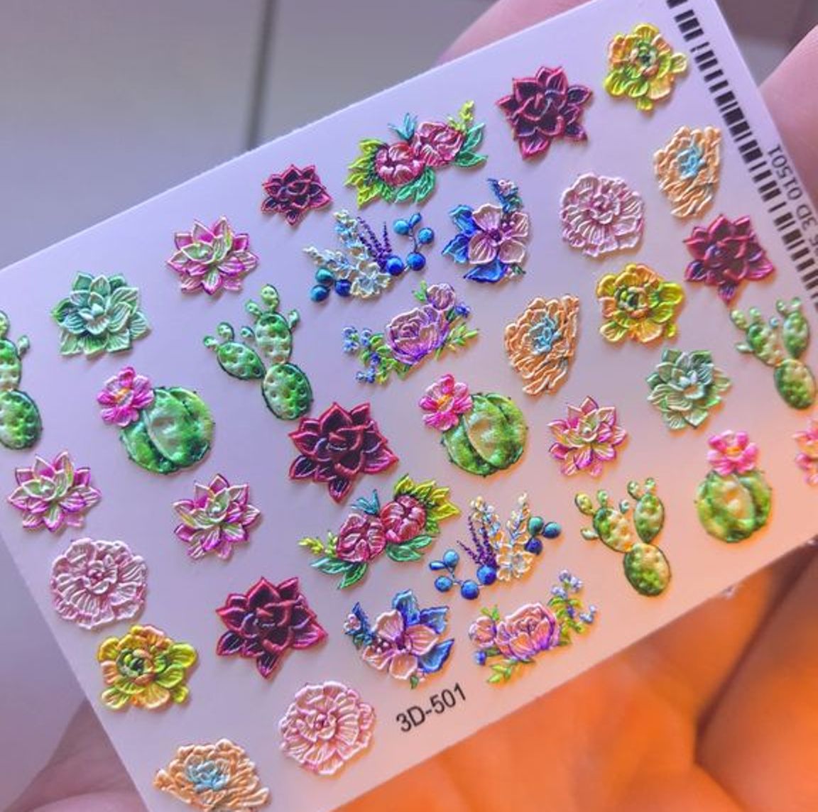ANNA TKACHEVA Water decal 3D 501, 1 pz. Istruzioni per l'uso: 1. Effettuare una preparazione standard della lamina ungueale.2. Selezionare il modello appropriato, tagliare l'immagine alla dimensione dell'unghia. 3. Applicare la base,polimerizzare. Applicare uno strato sottile del semipermanente bianco, se richiesto dal design del water decal. Polimerizzare. 4. Applicare uno strato sottile della base. Non polimerizzare. 5. Mettere il water decal su un disco di cotone inumidito con acqua calda (non fredda!) Per circa 10-15 secondi. Spostarlo trasferendo la pellicola sull'unghia. Raddrizzare la pellicola, tirando leggermente verso l'alto il bordo libero. Distendere con cura le pieghe, estraendo i resti di aria e acqua con un panno morbido, un pennello piatto o con le dita. Polimerizzare a tempo pieno. (UV - 2 min, led -30-60 sec). 6. Utilizzando la lima fine, dall'alto verso il basso, rimuovere delicatamente la pellicola in eccesso dal bordo libero dell'unghia. 7. Coprire 2 volte con il top coat, ben sigillando il bordo libero.