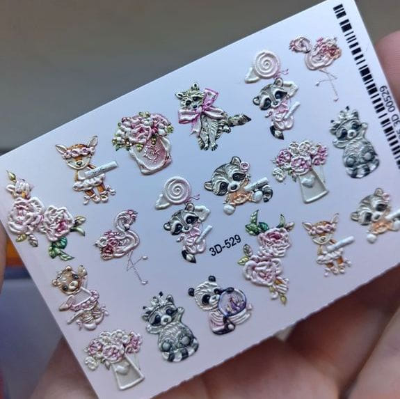ANNA TKACHEVA Water decal 3D 529, 1 pz. Istruzioni per l'uso: 1. Effettuare una preparazione standard della lamina ungueale.2. Selezionare il modello appropriato, tagliare l'immagine alla dimensione dell'unghia. 3. Applicare la base,polimerizzare. Applicare uno strato sottile del semipermanente bianco, se richiesto dal design del water decal. Polimerizzare. 4. Applicare uno strato sottile della base. Non polimerizzare. 5. Mettere il water decal su un disco di cotone inumidito con acqua calda (non fredda!) Per circa 10-15 secondi. Spostarlo trasferendo la pellicola sull'unghia. Raddrizzare la pellicola, tirando leggermente verso l'alto il bordo libero. Distendere con cura le pieghe, estraendo i resti di aria e acqua con un panno morbido, un pennello piatto o con le dita. Polimerizzare a tempo pieno. (UV - 2 min, led -30-60 sec). 6. Utilizzando la lima fine, dall'alto verso il basso, rimuovere delicatamente la pellicola in eccesso dal bordo libero dell'unghia. 7. Coprire 2 volte con il top coat, ben sigillando il bordo libero.