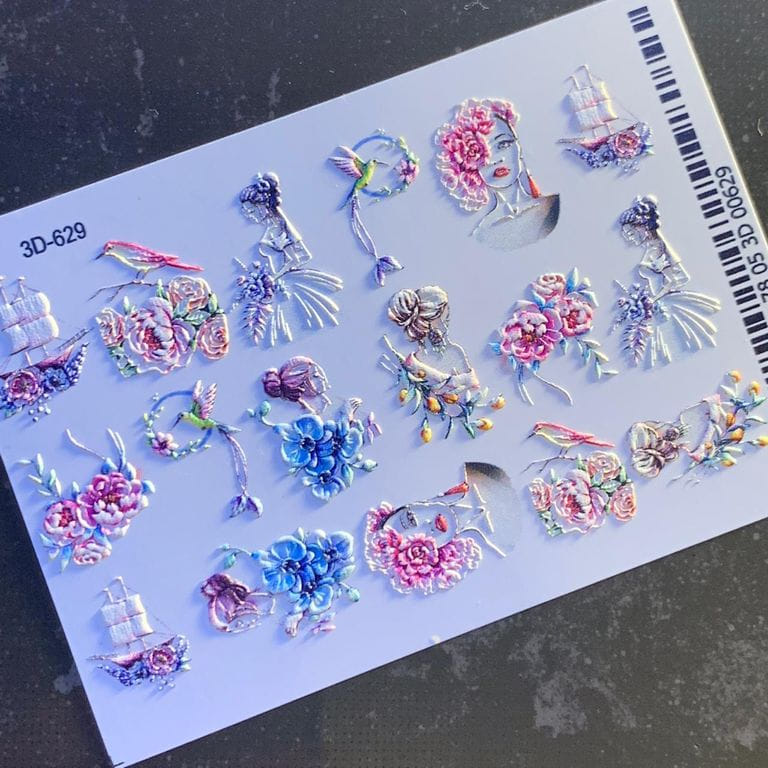 ANNA TKACHEVA Water decal 3D 629, 1 pz. Istruzioni per l'uso: 1. Effettuare una preparazione standard della lamina ungueale.2. Selezionare il modello appropriato, tagliare l'immagine alla dimensione dell'unghia. 3. Applicare la base,polimerizzare. Applicare uno strato sottile del semipermanente bianco, se richiesto dal design del water decal. Polimerizzare. 4. Applicare uno strato sottile della base. Non polimerizzare. 5. Mettere il water decal su un disco di cotone inumidito con acqua calda (non fredda!) Per circa 10-15 secondi. Spostarlo trasferendo la pellicola sull'unghia. Raddrizzare la pellicola, tirando leggermente verso l'alto il bordo libero. Distendere con cura le pieghe, estraendo i resti di aria e acqua con un panno morbido, un pennello piatto o con le dita. Polimerizzare a tempo pieno. (UV - 2 min, led -30-60 sec). 6. Utilizzando la lima fine, dall'alto verso il basso, rimuovere delicatamente la pellicola in eccesso dal bordo libero dell'unghia. 7. Coprire 2 volte con il top coat, ben sigillando il bordo libero.