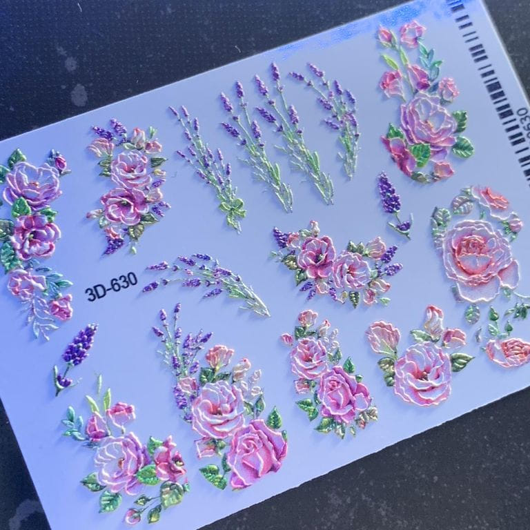 ANNA TKACHEVA Water decal 3D 630, 1 pz. Istruzioni per l'uso: 1. Effettuare una preparazione standard della lamina ungueale.2. Selezionare il modello appropriato, tagliare l'immagine alla dimensione dell'unghia. 3. Applicare la base,polimerizzare. Applicare uno strato sottile del semipermanente bianco, se richiesto dal design del water decal. Polimerizzare. 4. Applicare uno strato sottile della base. Non polimerizzare. 5. Mettere il water decal su un disco di cotone inumidito con acqua calda (non fredda!) Per circa 10-15 secondi. Spostarlo trasferendo la pellicola sull'unghia. Raddrizzare la pellicola, tirando leggermente verso l'alto il bordo libero. Distendere con cura le pieghe, estraendo i resti di aria e acqua con un panno morbido, un pennello piatto o con le dita. Polimerizzare a tempo pieno. (UV - 2 min, led -30-60 sec). 6. Utilizzando la lima fine, dall'alto verso il basso, rimuovere delicatamente la pellicola in eccesso dal bordo libero dell'unghia. 7. Coprire 2 volte con il top coat, ben sigillando il bordo libero.