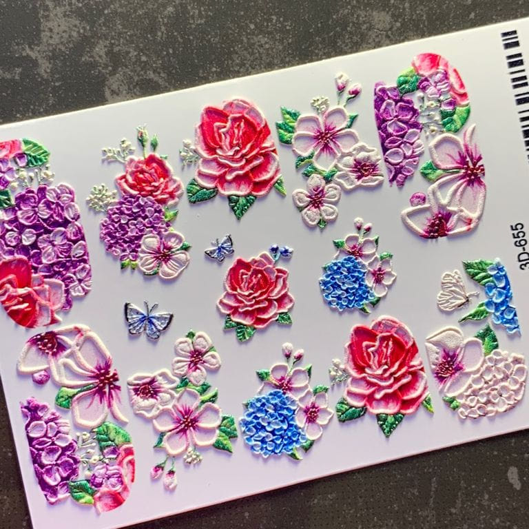 ANNA TKACHEVA Water decal 3D 655, 1 pz. Istruzioni per l'uso: 1. Effettuare una preparazione standard della lamina ungueale.2. Selezionare il modello appropriato, tagliare l'immagine alla dimensione dell'unghia. 3. Applicare la base,polimerizzare. Applicare uno strato sottile del semipermanente bianco, se richiesto dal design del water decal. Polimerizzare. 4. Applicare uno strato sottile della base. Non polimerizzare. 5. Mettere il water decal su un disco di cotone inumidito con acqua calda (non fredda!) Per circa 10-15 secondi. Spostarlo trasferendo la pellicola sull'unghia. Raddrizzare la pellicola, tirando leggermente verso l'alto il bordo libero. Distendere con cura le pieghe, estraendo i resti di aria e acqua con un panno morbido, un pennello piatto o con le dita. Polimerizzare a tempo pieno. (UV - 2 min, led -30-60 sec). 6. Utilizzando la lima fine, dall'alto verso il basso, rimuovere delicatamente la pellicola in eccesso dal bordo libero dell'unghia. 7. Coprire 2 volte con il top coat, ben sigillando il bordo libero.