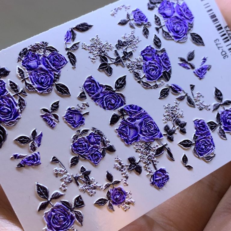 ANNA TKACHEVA Water decal 3D 773, 1 pz. Istruzioni per l'uso: 1. Effettuare una preparazione standard della lamina ungueale.2. Selezionare il modello appropriato, tagliare l'immagine alla dimensione dell'unghia. 3. Applicare la base,polimerizzare. Applicare uno strato sottile del semipermanente bianco, se richiesto dal design del water decal. Polimerizzare. 4. Applicare uno strato sottile della base. Non polimerizzare. 5. Mettere il water decal su un disco di cotone inumidito con acqua calda (non fredda!) Per circa 10-15 secondi. Spostarlo trasferendo la pellicola sull'unghia. Raddrizzare la pellicola, tirando leggermente verso l'alto il bordo libero. Distendere con cura le pieghe, estraendo i resti di aria e acqua con un panno morbido, un pennello piatto o con le dita. Polimerizzare a tempo pieno. (UV - 2 min, led -30-60 sec). 6. Utilizzando la lima fine, dall'alto verso il basso, rimuovere delicatamente la pellicola in eccesso dal bordo libero dell'unghia. 7. Coprire 2 volte con il top coat, ben sigillando il bordo libero.