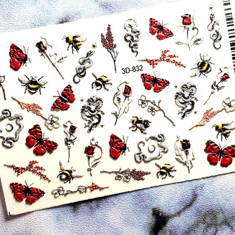 ANNA TKACHEVA Water decal 3D 832, 1 pz. Istruzioni per l'uso: 1. Effettuare una preparazione standard della lamina ungueale.2. Selezionare il modello appropriato, tagliare l'immagine alla dimensione dell'unghia. 3. Applicare la base,polimerizzare. Applicare uno strato sottile del semipermanente bianco, se richiesto dal design del water decal. Polimerizzare. 4. Applicare uno strato sottile della base. Non polimerizzare. 5. Mettere il water decal su un disco di cotone inumidito con acqua calda (non fredda!) Per circa 10-15 secondi. Spostarlo trasferendo la pellicola sull'unghia. Raddrizzare la pellicola, tirando leggermente verso l'alto il bordo libero. Distendere con cura le pieghe, estraendo i resti di aria e acqua con un panno morbido, un pennello piatto o con le dita. Polimerizzare a tempo pieno. (UV - 2 min, led -30-60 sec). 6. Utilizzando la lima fine, dall'alto verso il basso, rimuovere delicatamente la pellicola in eccesso dal bordo libero dell'unghia. 7. Coprire 2 volte con il top coat, ben sigillando il bordo libero.