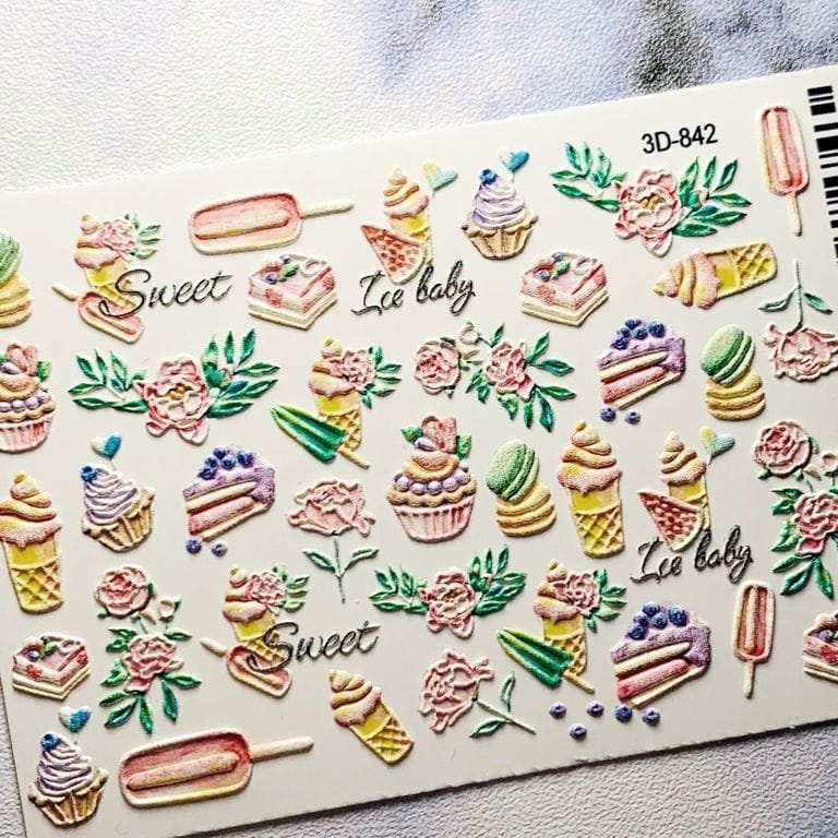 ANNA TKACHEVA Water decal 3D 842, 1 pz. Istruzioni per l'uso: 1. Effettuare una preparazione standard della lamina ungueale.2. Selezionare il modello appropriato, tagliare l'immagine alla dimensione dell'unghia. 3. Applicare la base,polimerizzare. Applicare uno strato sottile del semipermanente bianco, se richiesto dal design del water decal. Polimerizzare. 4. Applicare uno strato sottile della base. Non polimerizzare. 5. Mettere il water decal su un disco di cotone inumidito con acqua calda (non fredda!) Per circa 10-15 secondi. Spostarlo trasferendo la pellicola sull'unghia. Raddrizzare la pellicola, tirando leggermente verso l'alto il bordo libero. Distendere con cura le pieghe, estraendo i resti di aria e acqua con un panno morbido, un pennello piatto o con le dita. Polimerizzare a tempo pieno. (UV - 2 min, led -30-60 sec). 6. Utilizzando la lima fine, dall'alto verso il basso, rimuovere delicatamente la pellicola in eccesso dal bordo libero dell'unghia. 7. Coprire 2 volte con il top coat, ben sigillando il bordo libero.