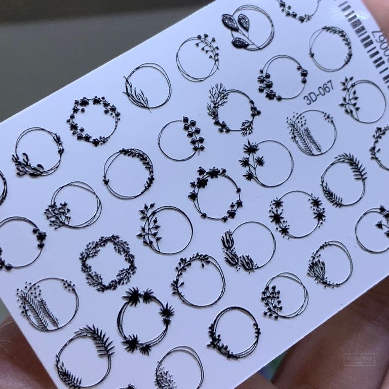 ANNA TKACHEVA Water decal ЗD 067 nero, 1 pz. Istruzioni per l'uso: 1. Effettuare una preparazione standard della lamina ungueale.2. Selezionare il modello appropriato, tagliare l'immagine alla dimensione dell'unghia. 3. Applicare la base,polimerizzare. Applicare uno strato sottile del semipermanente bianco, se richiesto dal design del water decal. Polimerizzare. 4. Applicare uno strato sottile della base. Non polimerizzare. 5. Mettere il water decal su un disco di cotone inumidito con acqua calda (non fredda!) Per circa 10-15 secondi. Spostarlo trasferendo la pellicola sull'unghia. Raddrizzare la pellicola, tirando leggermente verso l'alto il bordo libero. Distendere con cura le pieghe, estraendo i resti di aria e acqua con un panno morbido, un pennello piatto o con le dita. Polimerizzare a tempo pieno. (UV - 2 min, led -30-60 sec). 6. Utilizzando la lima fine, dall'alto verso il basso, rimuovere delicatamente la pellicola in eccesso dal bordo libero dell'unghia. 7. Coprire 2 volte con il top coat, ben sigillando il bordo libero.