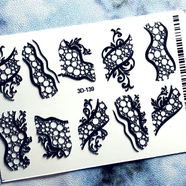 ANNA TKACHEVA Water decal ЗD 139 nero, 1 pz. Istruzioni per l'uso: 1. Effettuare una preparazione standard della lamina ungueale.2. Selezionare il modello appropriato, tagliare l'immagine alla dimensione dell'unghia. 3. Applicare la base,polimerizzare. Applicare uno strato sottile del semipermanente bianco, se richiesto dal design del water decal. Polimerizzare. 4. Applicare uno strato sottile della base. Non polimerizzare. 5. Mettere il water decal su un disco di cotone inumidito con acqua calda (non fredda!) Per circa 10-15 secondi. Spostarlo trasferendo la pellicola sull'unghia. Raddrizzare la pellicola, tirando leggermente verso l'alto il bordo libero. Distendere con cura le pieghe, estraendo i resti di aria e acqua con un panno morbido, un pennello piatto o con le dita. Polimerizzare a tempo pieno. (UV - 2 min, led -30-60 sec). 6. Utilizzando la lima fine, dall'alto verso il basso, rimuovere delicatamente la pellicola in eccesso dal bordo libero dell'unghia. 7. Coprire 2 volte con il top coat, ben sigillando il bordo libero.