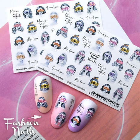 FASHION NAILS Water decal 3D #174, 1 pz. Istruzioni per l'uso: 1. Effettuare una preparazione standard della lamina ungueale.2. Selezionare il modello appropriato, tagliare l'immagine alla dimensione dell'unghia. 3. Applicare la base,polimerizzare. Applicare uno strato sottile del semipermanente bianco, se richiesto dal design del water decal. Polimerizzare. 4. Applicare uno strato sottile della base. Non polimerizzare. 5. Mettere il water decal su un disco di cotone inumidito con acqua calda (non fredda!) Per circa 10-15 secondi. Spostarlo trasferendo la pellicola sull'unghia. Raddrizzare la pellicola, tirando leggermente verso l'alto il bordo libero. Distendere con cura le pieghe, estraendo i resti di aria e acqua con un panno morbido, un pennello piatto o con le dita. Polimerizzare a tempo pieno. (UV - 2 min, led -30-60 sec). 6. Utilizzando la lima fine, dall'alto verso il basso, rimuovere delicatamente la pellicola in eccesso dal bordo libero dell'unghia. 7. Coprire 2 volte con il top coat, ben sigillando il bordo libero.