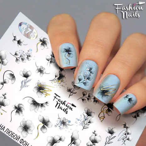 FASHION NAILS Water decal Galaxy 76, 1 pz. Istruzioni per l'uso: 1. Effettuare una preparazione standard della lamina ungueale.2. Selezionare il modello appropriato, tagliare l'immagine alla dimensione dell'unghia. 3. Applicare la base,polimerizzare. Applicare uno strato sottile del semipermanente bianco, se richiesto dal design del water decal. Polimerizzare. 4. Applicare uno strato sottile della base. Non polimerizzare. 5. Mettere il water decal su un disco di cotone inumidito con acqua calda (non fredda!) Per circa 10-15 secondi. Spostarlo trasferendo la pellicola sull'unghia. Raddrizzare la pellicola, tirando leggermente verso l'alto il bordo libero. Distendere con cura le pieghe, estraendo i resti di aria e acqua con un panno morbido, un pennello piatto o con le dita. Polimerizzare a tempo pieno. (UV - 2 min, led -30-60 sec). 6. Utilizzando la lima fine, dall'alto verso il basso, rimuovere delicatamente la pellicola in eccesso dal bordo libero dell'unghia. 7. Coprire 2 volte con il top coat, ben sigillando il bordo libero.
