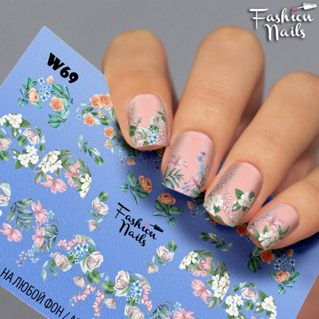 FASHION NAILS Water decal WHITE 069, 1 pz. Istruzioni per l'uso: 1. Effettuare una preparazione standard della lamina ungueale.2. Selezionare il modello appropriato, tagliare l'immagine alla dimensione dell'unghia. 3. Applicare la base,polimerizzare. Applicare uno strato sottile del semipermanente bianco, se richiesto dal design del water decal. Polimerizzare. 4. Applicare uno strato sottile della base. Non polimerizzare. 5. Mettere il water decal su un disco di cotone inumidito con acqua calda (non fredda!) Per circa 10-15 secondi. Spostarlo trasferendo la pellicola sull'unghia. Raddrizzare la pellicola, tirando leggermente verso l'alto il bordo libero. Distendere con cura le pieghe, estraendo i resti di aria e acqua con un panno morbido, un pennello piatto o con le dita. Polimerizzare a tempo pieno. (UV - 2 min, led -30-60 sec). 6. Utilizzando la lima fine, dall'alto verso il basso, rimuovere delicatamente la pellicola in eccesso dal bordo libero dell'unghia. 7. Coprire 2 volte con il top coat, ben sigillando il bordo libero.