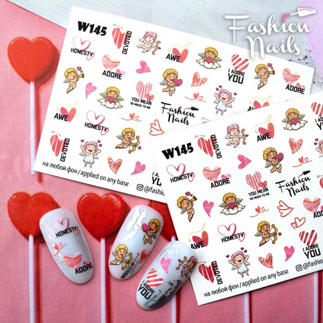 FASHION NAILS Water decal WHITE 145, 1 pz. Istruzioni per l'uso: 1. Effettuare una preparazione standard della lamina ungueale.2. Selezionare il modello appropriato, tagliare l'immagine alla dimensione dell'unghia. 3. Applicare la base,polimerizzare. Applicare uno strato sottile del semipermanente bianco, se richiesto dal design del water decal. Polimerizzare. 4. Applicare uno strato sottile della base. Non polimerizzare. 5. Mettere il water decal su un disco di cotone inumidito con acqua calda (non fredda!) Per circa 10-15 secondi. Spostarlo trasferendo la pellicola sull'unghia. Raddrizzare la pellicola, tirando leggermente verso l'alto il bordo libero. Distendere con cura le pieghe, estraendo i resti di aria e acqua con un panno morbido, un pennello piatto o con le dita. Polimerizzare a tempo pieno. (UV - 2 min, led -30-60 sec). 6. Utilizzando la lima fine, dall'alto verso il basso, rimuovere delicatamente la pellicola in eccesso dal bordo libero dell'unghia. 7. Coprire 2 volte con il top coat, ben sigillando il bordo libero.