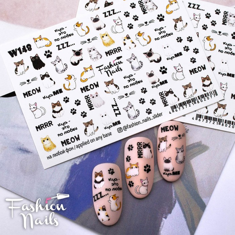 FASHION NAILS Water decal WHITE 148, 1 pz. Istruzioni per l'uso: 1. Effettuare una preparazione standard della lamina ungueale.2. Selezionare il modello appropriato, tagliare l'immagine alla dimensione dell'unghia. 3. Applicare la base,polimerizzare. Applicare uno strato sottile del semipermanente bianco, se richiesto dal design del water decal. Polimerizzare. 4. Applicare uno strato sottile della base. Non polimerizzare. 5. Mettere il water decal su un disco di cotone inumidito con acqua calda (non fredda!) Per circa 10-15 secondi. Spostarlo trasferendo la pellicola sull'unghia. Raddrizzare la pellicola, tirando leggermente verso l'alto il bordo libero. Distendere con cura le pieghe, estraendo i resti di aria e acqua con un panno morbido, un pennello piatto o con le dita. Polimerizzare a tempo pieno. (UV - 2 min, led -30-60 sec). 6. Utilizzando la lima fine, dall'alto verso il basso, rimuovere delicatamente la pellicola in eccesso dal bordo libero dell'unghia. 7. Coprire 2 volte con il top coat, ben sigillando il bordo libero.