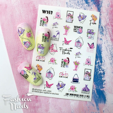FASHION NAILS Water decal WHITE 153, 1 pz. Istruzioni per l'uso: 1. Effettuare una preparazione standard della lamina ungueale.2. Selezionare il modello appropriato, tagliare l'immagine alla dimensione dell'unghia. 3. Applicare la base,polimerizzare. Applicare uno strato sottile del semipermanente bianco, se richiesto dal design del water decal. Polimerizzare. 4. Applicare uno strato sottile della base. Non polimerizzare. 5. Mettere il water decal su un disco di cotone inumidito con acqua calda (non fredda!) Per circa 10-15 secondi. Spostarlo trasferendo la pellicola sull'unghia. Raddrizzare la pellicola, tirando leggermente verso l'alto il bordo libero. Distendere con cura le pieghe, estraendo i resti di aria e acqua con un panno morbido, un pennello piatto o con le dita. Polimerizzare a tempo pieno. (UV - 2 min, led -30-60 sec). 6. Utilizzando la lima fine, dall'alto verso il basso, rimuovere delicatamente la pellicola in eccesso dal bordo libero dell'unghia. 7. Coprire 2 volte con il top coat, ben sigillando il bordo libero.